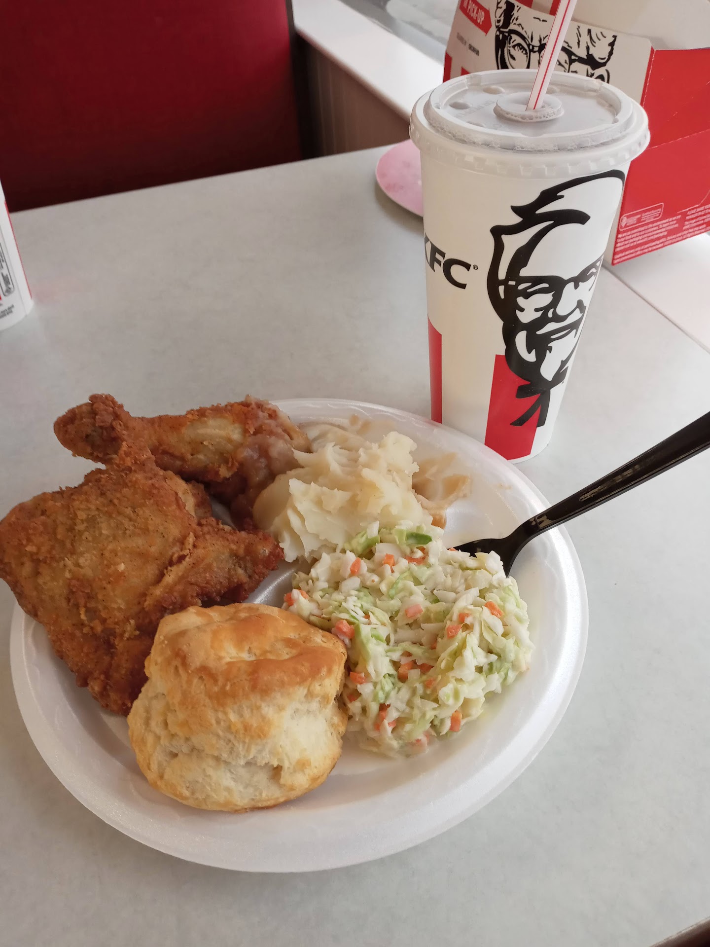 Ā Ā Ā Read moreWhen they tell you to pull over they will take your food hear me out āsay no and stay in lineā they did this to me and 15 min later my food wasnāt even coming my way. I wasnāt upset its the lack of communication that they did not inform me that my food was going to take 20min. Like just be honest since I place my order and say āsorry for the inconvenienceā itās going to be a 20 min wait since we donāt have any chicken availableā¦. Like Iām still going to wait⦠whoās ever franchise this is needs to come and retrained this KFC. I donāt work here and I very well know the menu every time I ask for a 2 piece meal they always say what drink? I asked for a meal it comes with 2 sides no drink. 1 more thing thank you for giving me the expired chicken for my mash potato bowl. Donāt forget your employees and you all are replaceable. You should eat expired chicken next time you take your break and see if you like it, you would do that why give it to a...