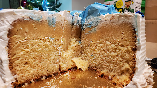 Be careful with the quality of the tres leches cake because it has gone WAY down. As you can see in the picture, only the top 1/4 has leche... AGAIN! You can clearly tell where the separation line is from the part of the cake that's soaked with leche at the top and the part that doesnt have leche at the bottom, especially when frozen. It feels like they're skimping out on the leche BIG TIME now, especially for pre-made cakes. The amount of leche they put on there was not even close to what it needed. They've done this to me twice now, once for Thanksgiving, which I thought may have been an accident and now another time last weekend. The most recent time I bought the cake, I specifically confirmed SEVERAL times the spelling of my son's name and they still spelled it wrong. That's just sloppy service. When the service is careless like that and then your get a cake with only 1/4 the leche for the second straight time, that's what made me leave them a 2-star review. As a business owner, I don't like leaving low reviews, but this really disappointed my family and I had to say something with the hope that someone on their management team sees this and makes the proper corrections to bring the quality of their tres leches cakes back up to their previous standards. I'll gladly adjust my review if things change...
