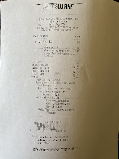 Read moreMy Only regret was ordering online at this place where comon sense isn't applied when your picking up your online order at the register ....obviously I'm there waiting for some 1 to ask me what I want ..yes being respectful I waited for subway employee to finish prepping food for a customer she was helping but to asked me aside from the line me being in front of the register so you can ring the customer up......hello I placed my order 15+min ago, I paid for it already.... my food is ready getting cold 🥶 why are you making me wait more that it should...... When someone is in line ordering 2+ sandwiches and the person behind only 1 they jump you in line because their food is ready and its common sense they do veggies and pay for it so the sub don't get cold if hot..... don't know why you couldn't catch the resemblance here, all I needed was to ask my name, order # or whatever for you to give me my...