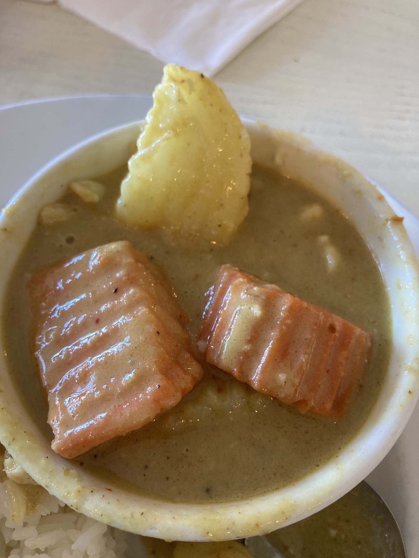 Oh no! The yellow curry at first sight was a brownish color with a hint of yellow gravyish look to it. It was Like a gravy you put on mashed potatoes or your thanksgiving turkey. The curry even had a bounce to it. This was NOT the delicious yellow curry they USED to make!