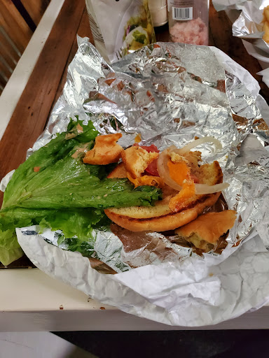 I was sorely disappointed in the food and the service wasn't much better. The front end staff were not in the least engaging, neither were they friendly. I had a to go order and I wasn't even offered a seat while I waited to pay. The food was ready even as I arrived, however I had to hang around in the doorway while I waited to pay (payment over the phone not accepted). The Original Maggie Mae's Burger that I ordered was NOTHING like the description... "Twin quarter pound 100% ground beef patties" Nope, more like 2 McDonald's cheeseburger patties. I'd be shocked if the total beef weight was more than 6 ounces. I got twice as much bun than burger- not a good thing when you're paying $10. I was even asked how I would like the burger cooked, (medium), but that made no difference because the patties were so miniscule they could only have been overcooked. No salt, pepper, or other evidence of seasoning only added to the injustice of this being called a burger. The unripened tomato and the gigantic lettuce leaf just highlighted the total fail of this mess. Even though I live within a sixty second walk from the restaurant, by the time I made it home the fries were stone cold and trying to reheat them only magnified the fact that they weren't freshly made to begin with. The second meal I ordered, which was for my son, was the Maggie Mae's Fried Chicken Sandwich: another disappointment. It seems like everyone is trying to capitalize on the furor caused by the Popeye chicken sandwich. Maggie Mae's should have bowed out of the competition. The chicken appeared to have been flattened to give the illusion of being bigger than it actually was. To say that it was bland is being generous: there was absolutely no seasoning evident. I had to really get creative to make this sandwich edible. Again, the tomato was not ripe and there was an over abundance of lettuce and bread ratio to meat. Luckily I keep locally grown tomatoes on hand: see the difference in the photo. Additionally, I requested cole slaw in lieu of fries but here again I was cheated. The 3 tablespoons of slaw were served in a condiment sized container. This experience was an all around flop: I wasted both time and money and worst of all, our hunger is not appeased. This is a clear case of an establishment not living up to the hype. Too bad, living so close I would have become a repeat customer.
