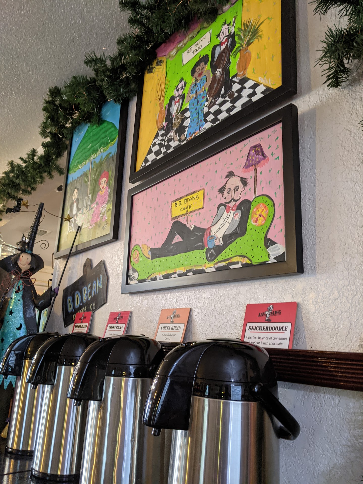 Read moreHad breakfast here. I had seen the place several times but had no idea how interesting it was inside and the food was amazing. What a visual experience. P The first impression is the smell of roasted coffee as you enter. The service was quick and friendly. I had spinach quiche and home made tomato basil soup. My friend had Ceasars salad and homemade Italian wedding soup. We topped it off with a shared slice of homemade coconut cake. Absolutely a gastric delight! Great conversation and a decor to catch your eye visually at every glance. We will return. B d’s is easy to miss on the road . It is located right next to Circle K in Belleview. I highly recommend stopping and...