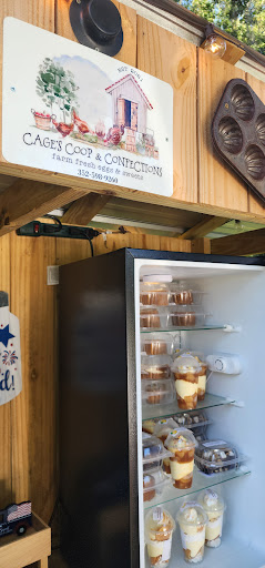 Nice family owned food stand. 2 small refrigerators with parfaits, cookies, brownies, etc. The eggs are next to the payment box. Cash only and put the money in the box. I had a triple chocolate cookie and cherry bliss, both very tasty. Check out their Facebook page for more information and ordering specific items as what is available in the food stand will vary...