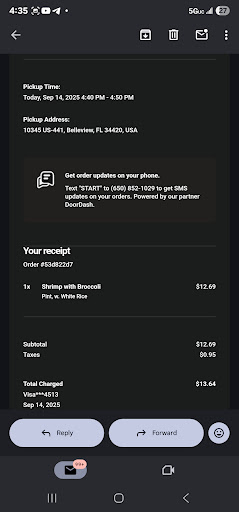 Read moreThe lady at the counter was extremely rude and made assumptions about me without looking at my receipt or checking my order number. She assumed I was a door dash delivery driver as soon as I walked in. I literally had the receipt pulled up on my phone showing her the order number and full detailed receipt I received after I paid online to pickup my order. Again without looking at my receipt she dismissed me and told me to "complete my order" or she won't give me my food I already pre paid for. I tried showing her the receipt again and she yelled out, right in front of other customers "complete order or I give you nothing!". I tried showing her the receipt again and asked her to please check my order number. She finally checked her little tablet screen and realized I was not picking up doordash but for myself. She then proceeds to change the subject and tell me I ordered the wrong way and I would have paid 4 dollars less if I ordered through their website. I didn't even care about the 4 dollars at that point I just wanted my food and to go about my day. I did not raise my voice nor did I get belligerent. I simply walked out. I get my shrimp and broccoli and there's literally 4 shrimp in the entire dish smh. I will NEVER support this business again. Acknowledging when you're wrong and apologizing to a paying customer is what's...