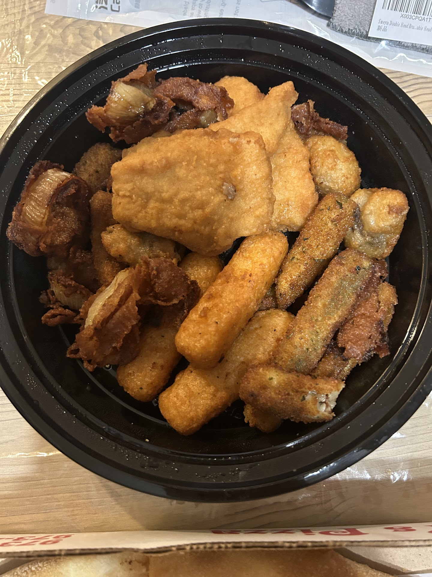 The service was good. The young lady that helped us was attentive and did her best. They got our order wrong and put green peppers instead of the cherry peppers that we specifically requested. We simply picked them off and ate our pizza anyway.
