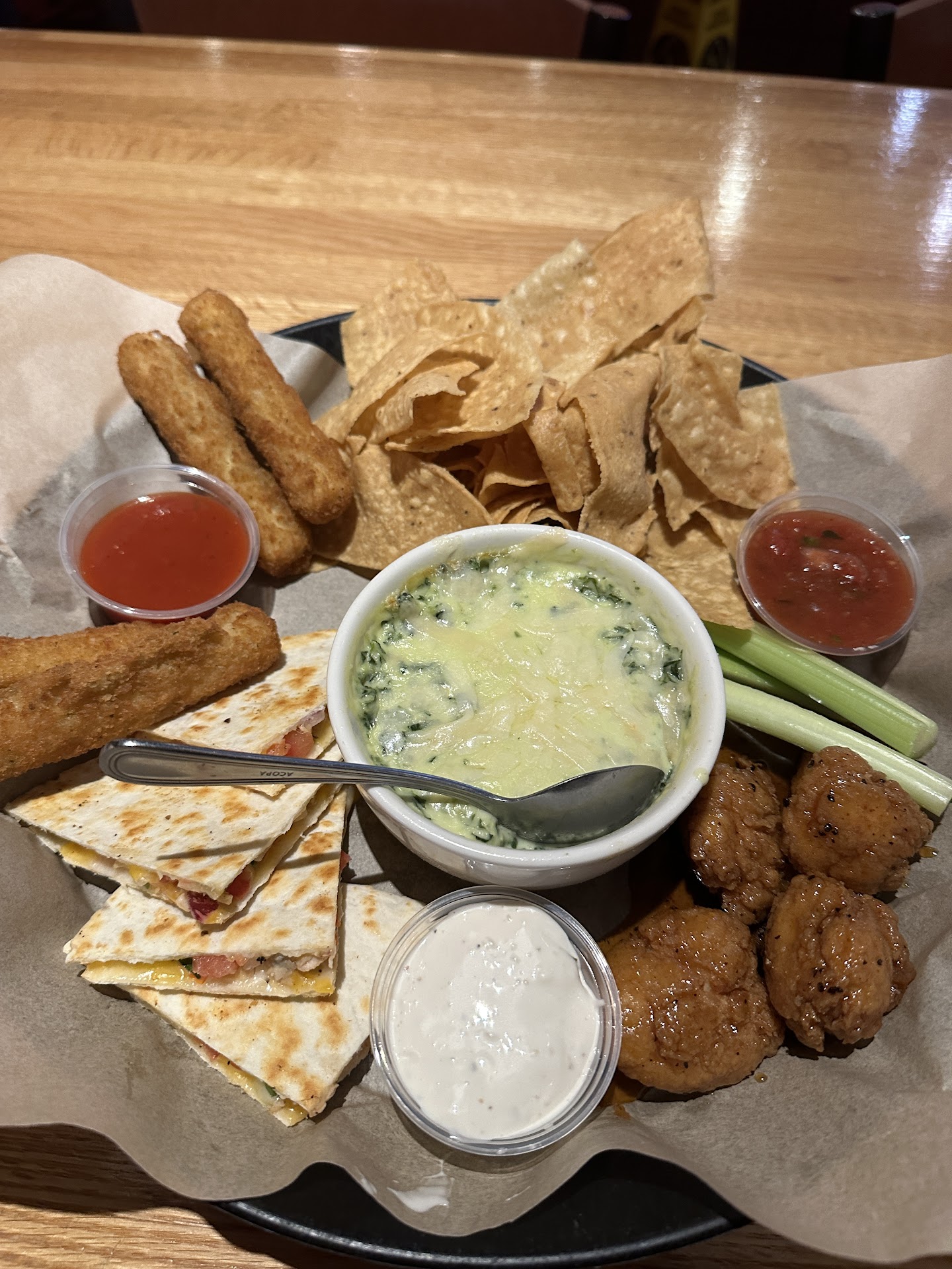Read moreSecond happy hour starts at 9 PM and it is tradition that we come here after the Friday night Veteran's event at the Battle in Seattle. The food is really good and the half price HH snacks are a good value. The chicken wonton tacos, pretzel with beer cheese, quesadillas, and wedge salads with blue cheese and bacon are all favorites. There were 17 of us so a delay is understandable. There is a tablet on the table so one may order appetizers and desserts directly. Oddly, while the tablet did reflect the HH prices were applicable it was missing several items on the appetizer menu including the wedge salad and make your own sampler plate. We ordered for our section of the table using the tablet and got our food and were done eating before the others on either side were served (those that gave order to the bar staff member serving our table; And we did share!!). We placed an order for 2 salads with her as well as there was no other option - and those came very late. Not only did the server ordered food arrive later than the tablet food- she had to come back 2x and check- and then delivered incorrect items (16 oz vs. 22 oz beer- horrors!!) Also the one IPA on draft was out so my IPA addicted colleague drank the bottled option. Other servers brought us our food (including a mini brownie a la mode (YUM) and 4 spoons (again ordered from the tablet and delivered in minutes. Great place, yummy comfort food, and if you are starving and can find what you want to eat on it- Use...