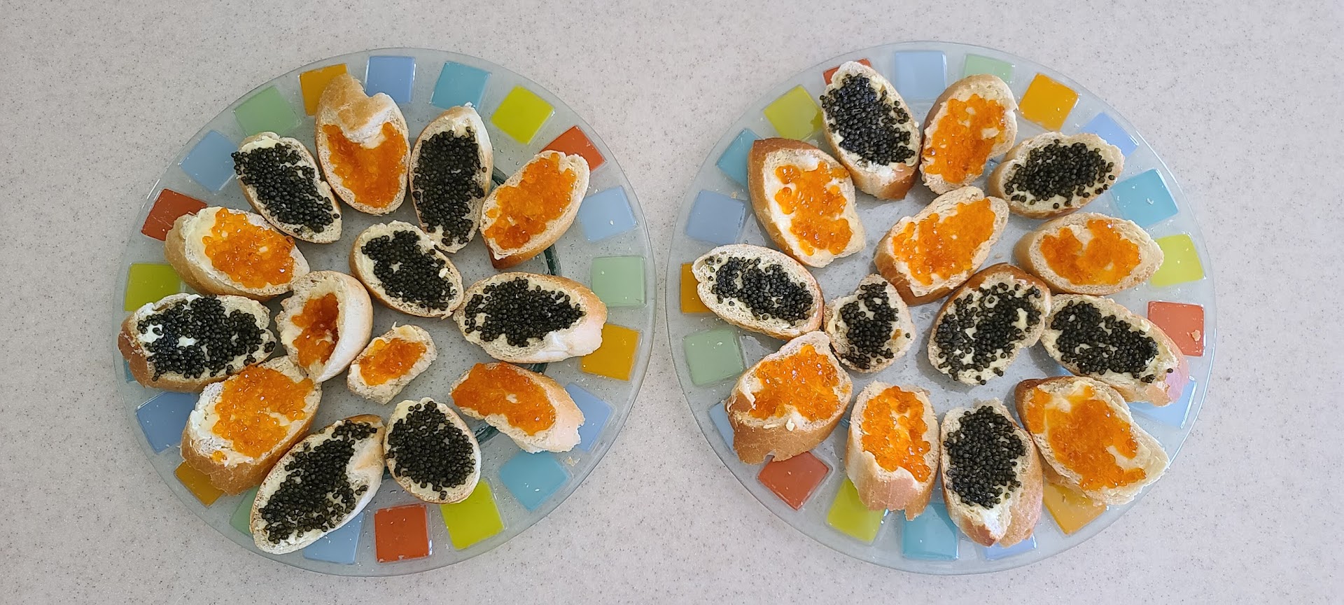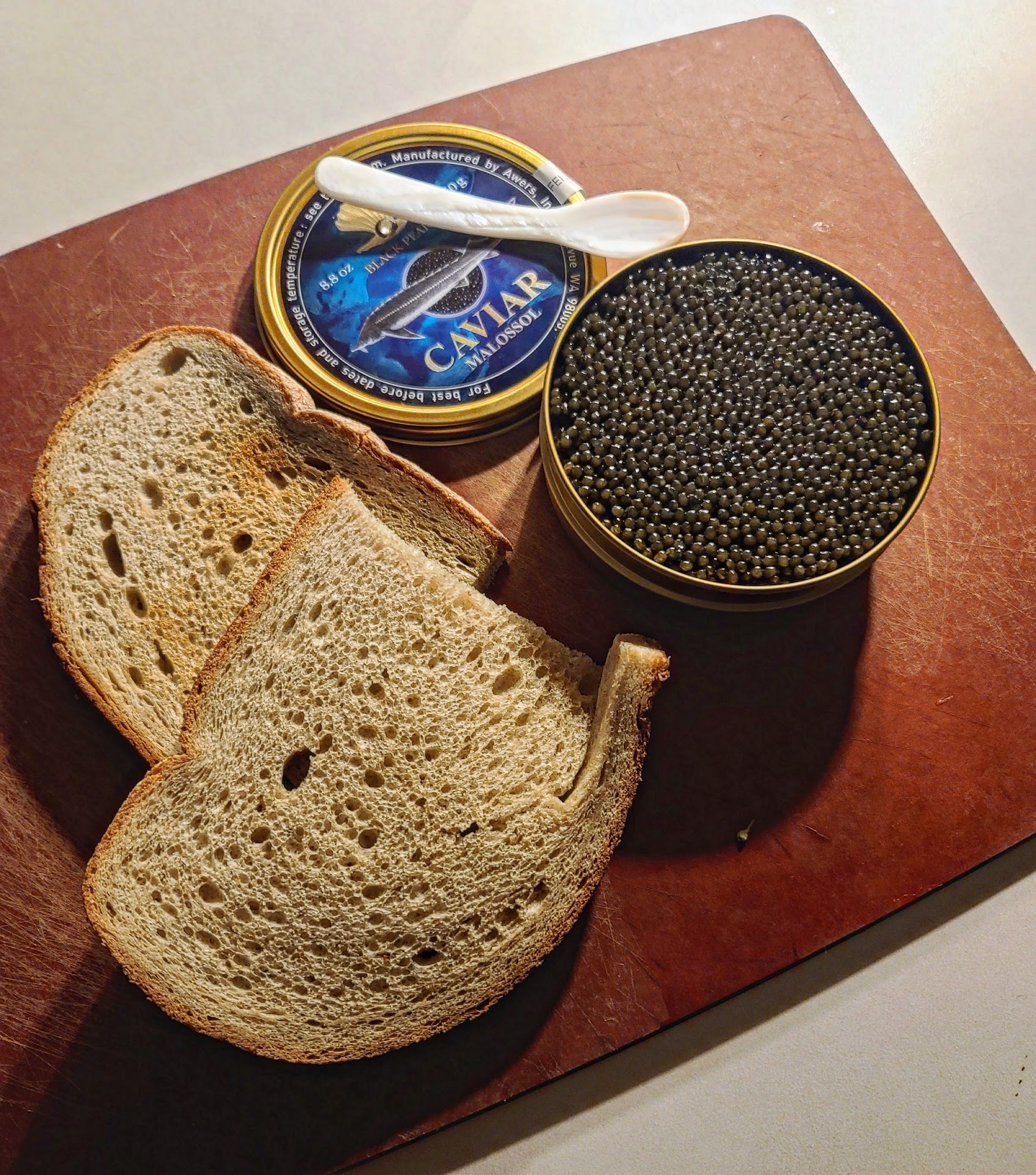 100g Ossetra Black caviar was of an exceptional quality, but was enough for 10 sandwiches only. Still, we enjoyed every bit of it! 250g Ossetra had a bit different taste, but was also very good and lasted for many more sandwiches!