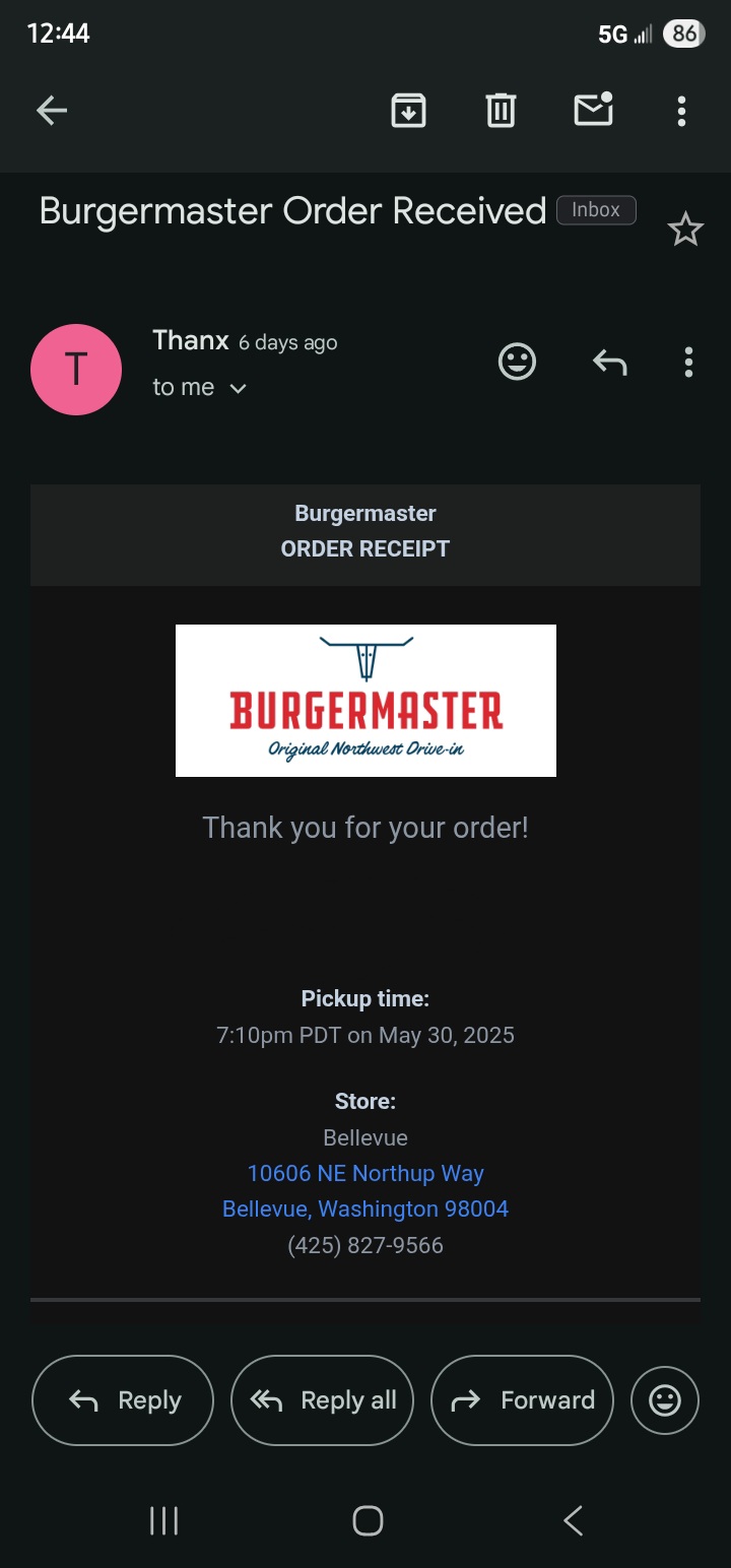 Like I told the first person I spoke to the day after, I didn't care about a refund, I was worried others might get sick too. The lack of care/concern is alarming. My family will no longer be eating at any Burgermaster with business practices like this.
