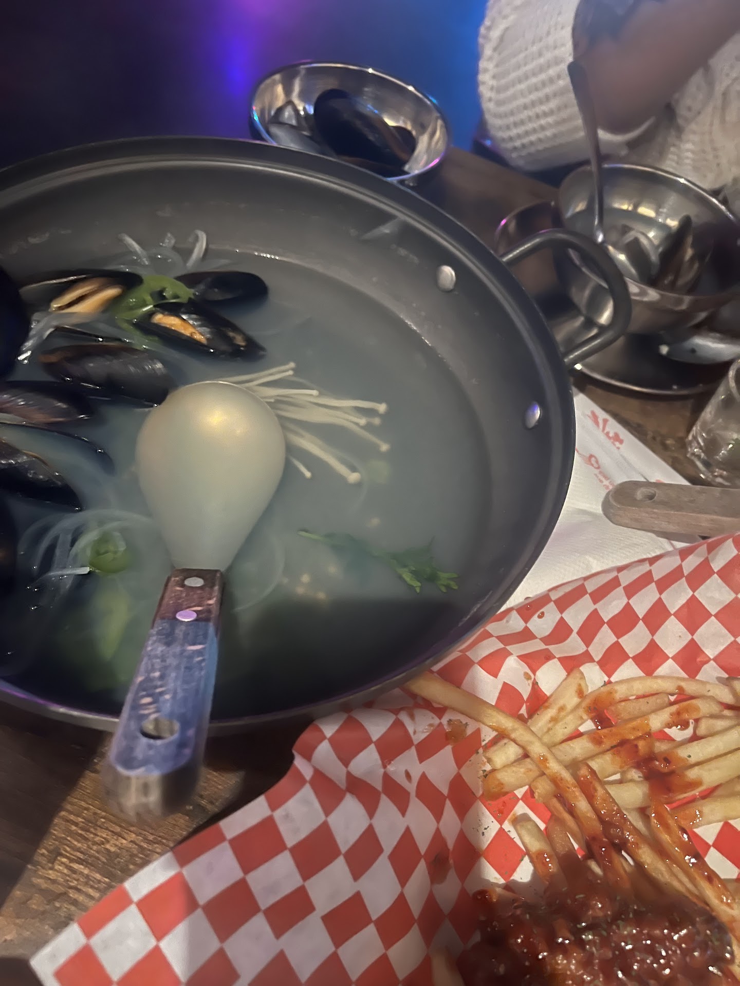 The cheesy corn was mostly burnt, the tteokbokki sauce was very watery, and the french fries were somehow crispy and soggy??