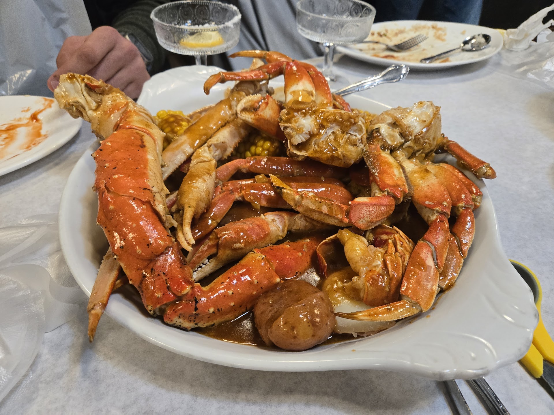 Read moreThe crab season was OK. I like the food that I ordered which was the Crab Season Combo that included lobster tail , 1king crab leg, 2 snow, crab clusters, two Dungeness crab clusters four potato halves four slices of sausages and 1 corn cut in half for $125.00. I choose the garlic and butter seasoning, which was excessive amount of butter and no seasoning to the taste. I wish the seasoning could have been broiled in the crabs. Ii was anything like your regular crab boil. There is an Asian flair to the crab. If you get any of the other sauce, it will be more of a Asian style and not a water-based juice that you would get at most crab boil resturants. I have to say that the quality of SERVICE was awesome. They staff were very attentive and kind and was receptive to our opinions on the taste of the food. There was seven of us. Two of us only liked our meals. I ended up with my daughters clams and mussels. It was my birthday weekend and they gave me a birthday shot which was great! Overall, great service! I will go back again, but be specific how to prepare the butter and garlic, which would be not as much and maybe add some lemon...
