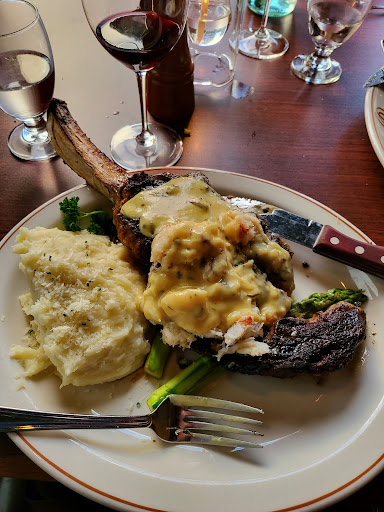 I got the 16oz ribeye and split it. The ribeye was great. They cooked it perfectly. The black peppercorn sauce is HEAVENLY. I recommend pouring some of this sauce on the garlic mashed potatoes as well. the garlic mashed potatoes don't come with any gravy. For the heavy price, one would think there would be gravy with my mashed potatoes...