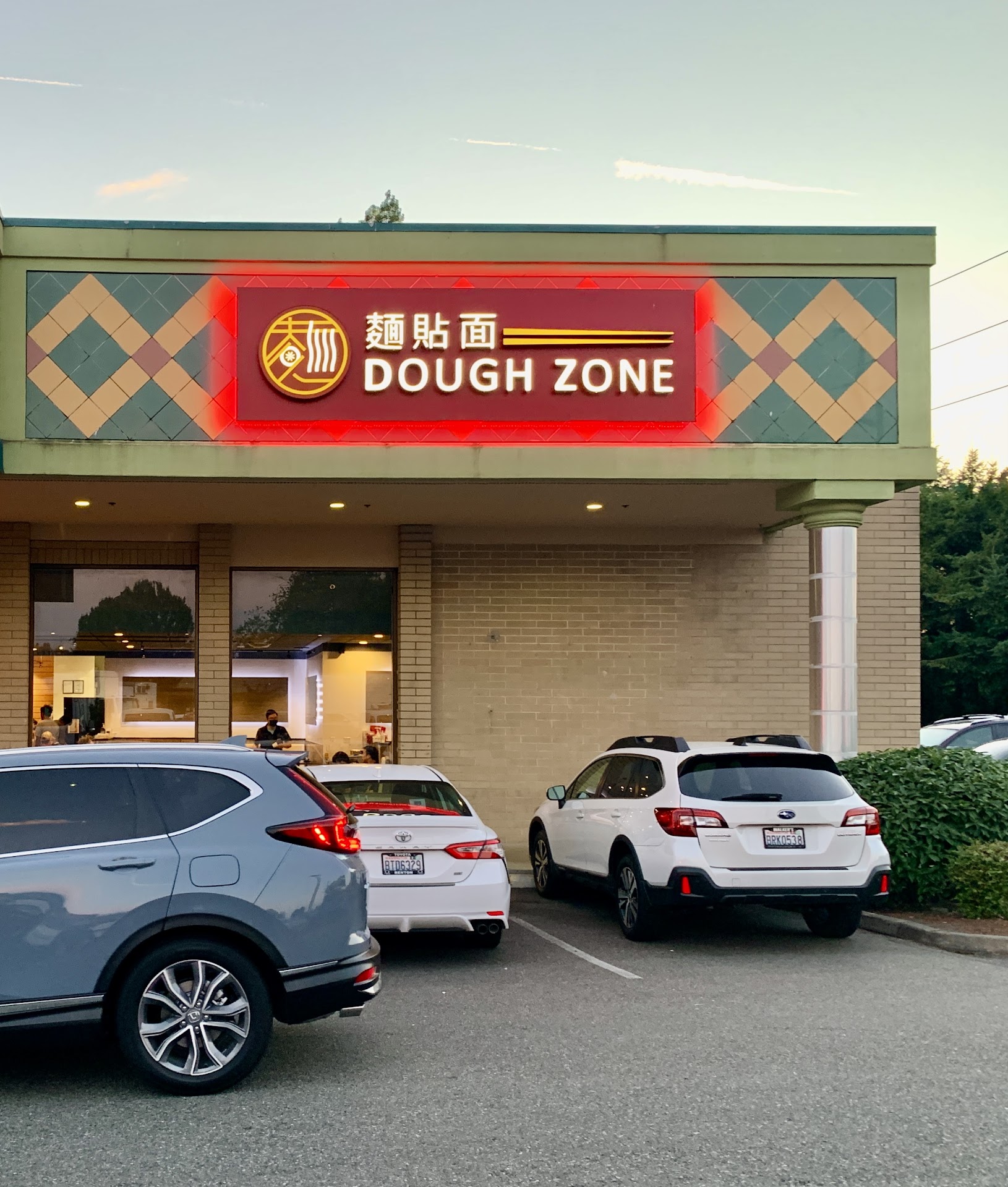 Parking: shared lot that is a bit cramped and smack dab right near Dough Zone;s entrace is an egged green van with flat tires that seems like it's been there for years. Totally out of place for a "nice" area. Also, strange that no one has done anything about it.