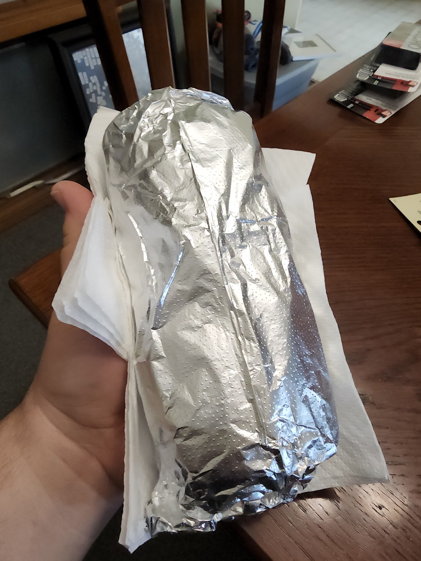 Today, I treated myself to a For the Love of Food Truck burrito for breakfast. Now, I've never been disappointed with this decision for years, but today was something other-worldly. I started by walking up and was greeted with smiles and happy conversation. Thanks for setting the bar for my day so well! Next, I drove home with this foil-wrapped slice of heaven, filling my vehicle with smells from some other land, a happy place full of wonder and excitement. Unwrapping the double layers of foil (to preserve the heat and increase the anticipation, obviously), I was in awe at what was before me - a burrito larger than my abnormally large hand, a tortilla toasted to perfection, and the smell...oh...my...word... my dog started drooling from across the house in his sleep. First bite. Let me preface this - I have no idea 'which' burrito I have; I call and ask for '1 chef special'...and I have never been disappointed by Moises' skills and choices. Also he adds some jalapeño for me. My taste buds have never been so on point, so broadly spread as to send a cacophony of electrical signals to my brain, which was able to process the noise into an understanding of something incredible. Instantly hit with a smokey/sweet punch, the meat shredded but not abused. The crispy potatoes and rice popped when crushed, adding a wonderful textural component. I'm pretty sure there is cream cheese in here, as I have this silky texture coating my mouth briefly, enhancing the sweet of the meat, but also bringing to light the smokey notes. There is a bit of heat from the jalapeño, counterbalanced by the sweet of the meat and cheese, but everything is so perfectly balanced, my brain is struggling to keep up. It's like Christmas morning as an adult father. The kids are amped up with anticipation, and you can't wait to play with them either! But first...coffee and maybe a sweet confection - taking your joy to a different level of happiness. Yes, this burrito is better than Christmas...because you have can this all year long. What can I say? I'm in heaven. I'm on another plain of existence. I have ascended to the clouds of the food truck afterlife and am looking down at the best dang food truck this side of paradise. Do yourself a favor, do the pleasure centers of your brain a favor, do your diet a favor - experience this little food truck. You deserve a cheat day, you deserve dopamine, you deserve the best deal for a burrito the size of your head you could ever ask for. There is no negative to say here. The value, the product, the cooks, and the experience....it's something you simply owe yourself to try once. You will not regret it. (nor will you stop at only once). (I was not requested nor sponsored for this review. I paid for the shirt myself. I tip. This place is simply that good).Hands down, the best breakfast burrito I've ever had, and the friendliest...