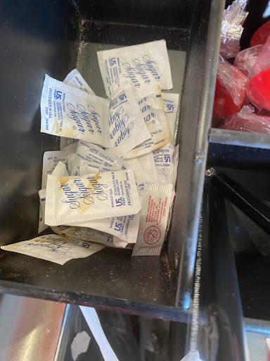 The worst part was how dirty the entire place was. From the moment we walked in the front door we noticed garbage all over the floors. Food wrappers, fries, random other things we’re everywhere. The empty tables were about 50/50 for being cleaned. Some we could tell were sticky. The white tiles of the floors were black in some areas from not being cleaned. The soda/condiment counter was the dirtiest of all. There was so much grime on the soda machine in places there shouldn’t have been anything. There was ketchup smeared everywhere, including on the soda machine & floor. There was a brown dried substance all over the sugar packets.