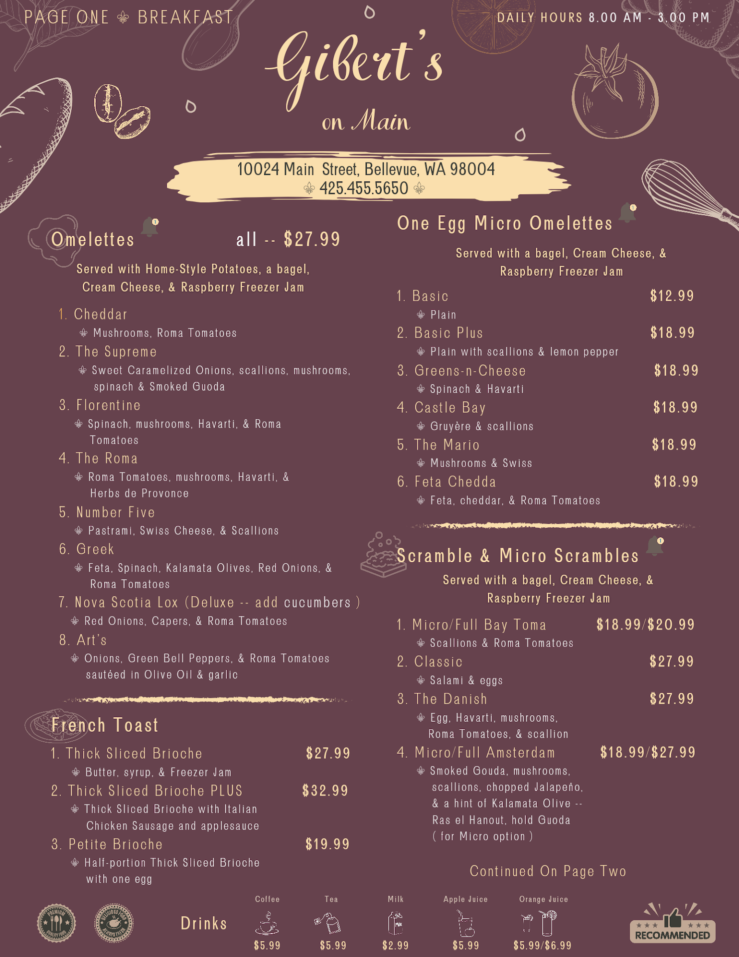 Given the prices continue going up (the $18 omelette breakfast in 2015 is now $28), and given that I have to stand in line and order myself, take my own drink, take my own napkins and silver, I don’t think I will visit again and if my wife forces me to, I will not leave a tip. We’ve had the same lady take our order the last four times. Three of those four times, she messed up the same order we’ve been giving for the past 8 years. The visit prior to our one this weekend, she messed up 3-4 orders in a row. Each person went to the counter to complain. This person is either intentionally screwing the business, just does not care, or doing it to steal from the owners (free food?).