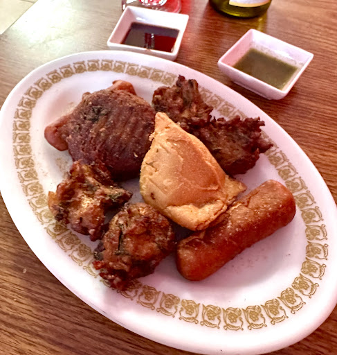 😊😊😊 The vegetarian appetizer platter was superb. The surprise was the very flavorful veggie samosa and the paneer pakora.