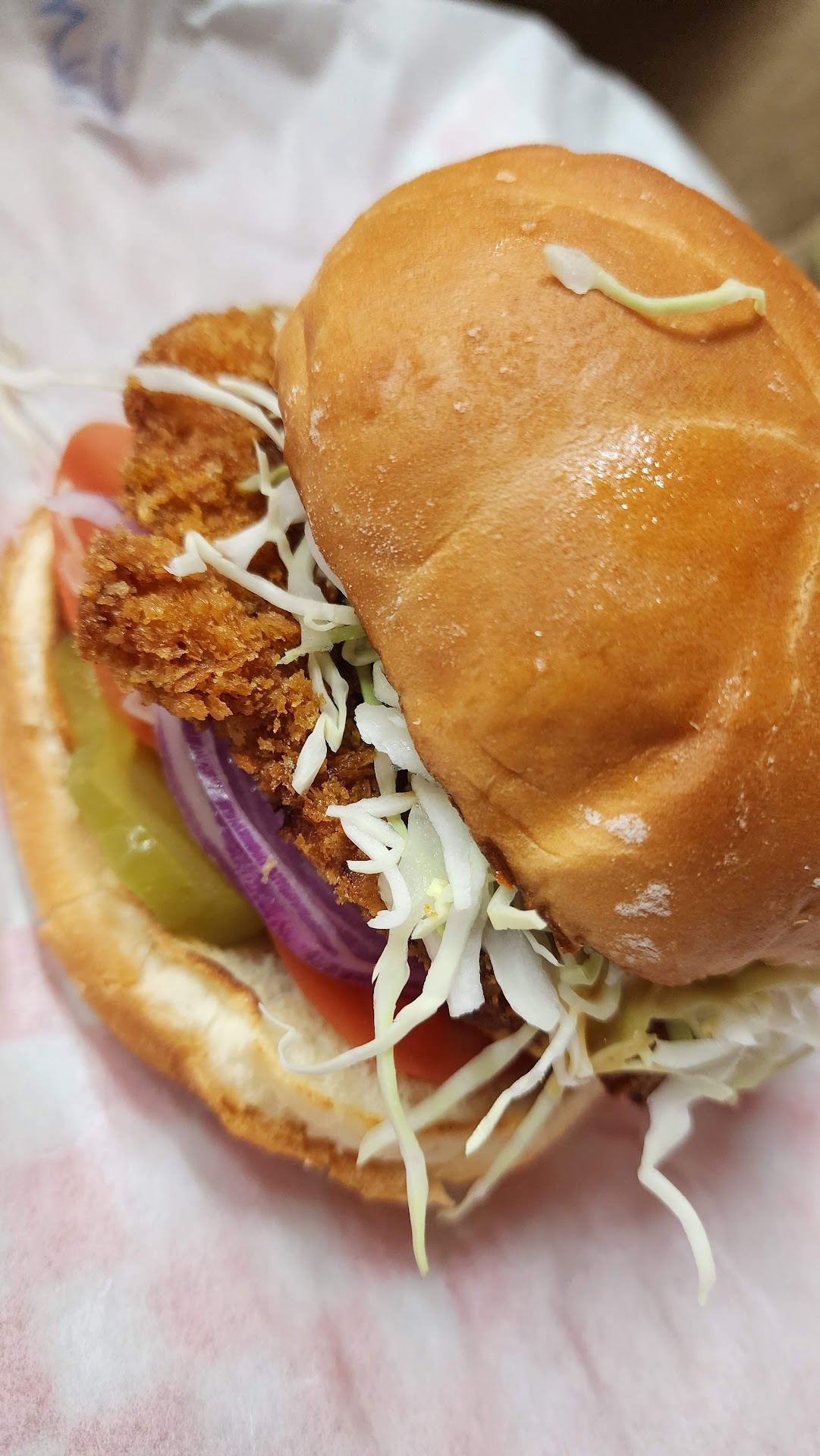 I've been here a few times, it's exactly as delicious as it sounds. I've had the beef, pork, and chicken katsu patties at different points, and there all very good, the chicken is probably my favorite but if you're only going to try one the burger is the experience you probably want to have. This is a fried burger, so there's no way it wouldn't be delicious, but it's really not as greasy as you would expect and the batter is light and crispy. The veg on the burger is good, too. Always fresh, and they use Japanese-style variants of things where they can to give you that Japanese-American fusion experience (the burger will have a giant pile of delicious cabbage on it instead of lettuce for example, and they use Japanese-style mayos and sauces).