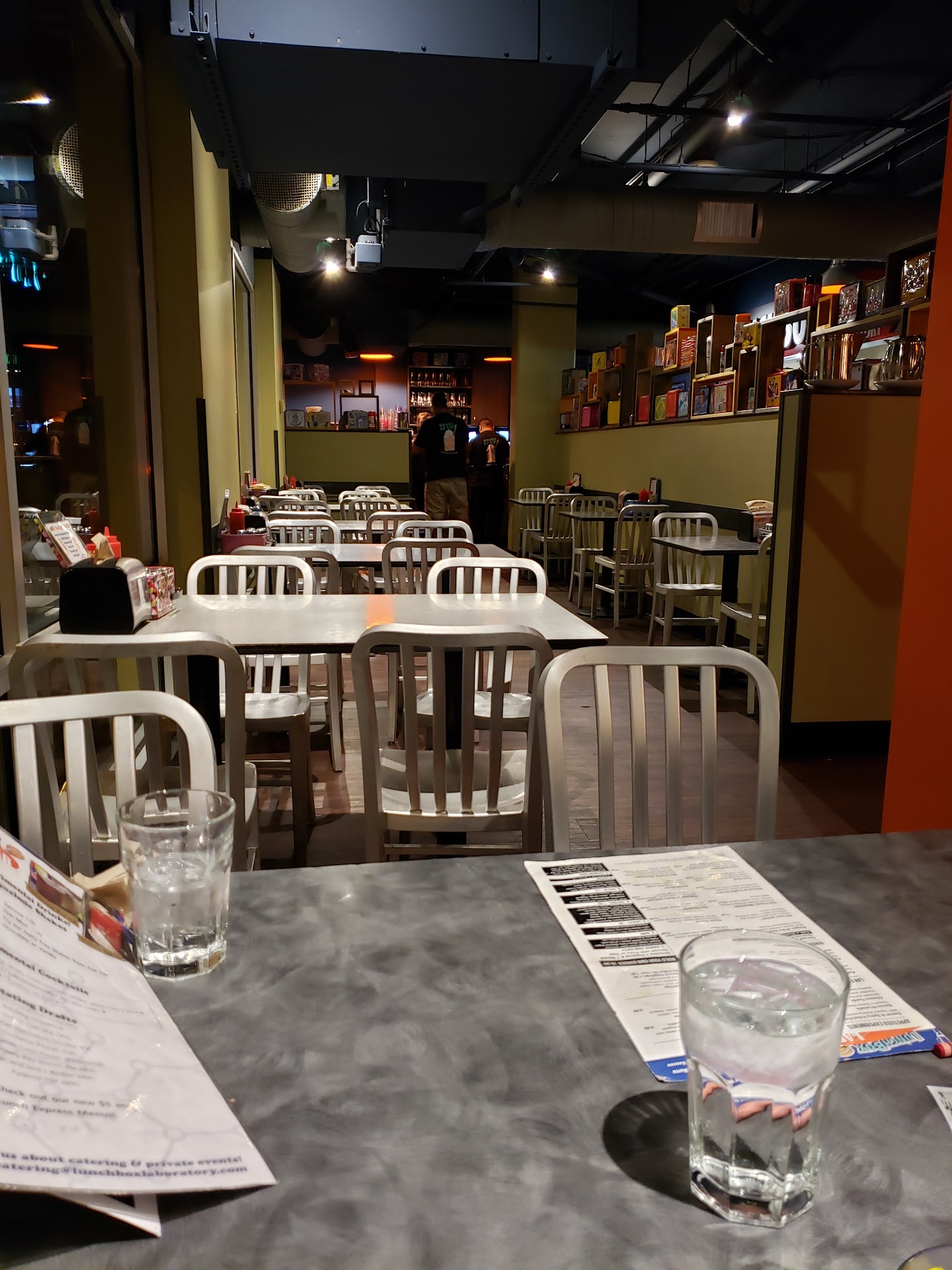 We brought a big group ready to spend money and make merry and Lunchbox Lab acted like they didn't care about raking in a profit. Unbelievable. My friend said the burgers here were the best in town, but I wouldn't know as I had to leave for a previous engagement 3 hours into the night. Thankfully, my friends offered me bits from their plates when they heard I hadn't even gotten my appetizer. I feel great eating leftovers at a restaurant.