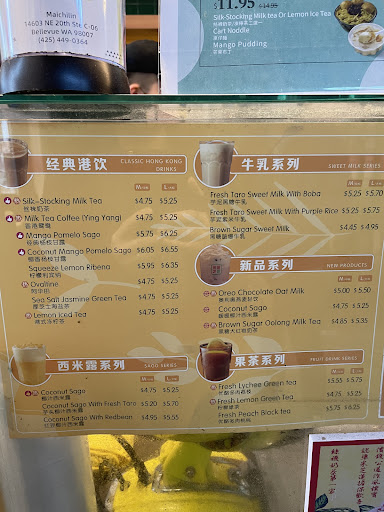 Read moreThe quality of Mai Chi Lin went downhill over the past year which is very disappointing. They used to have one of the best HKstyle milk tea in the greater Seattle area. The staff was always mediocre, but at least the drinks were good.
