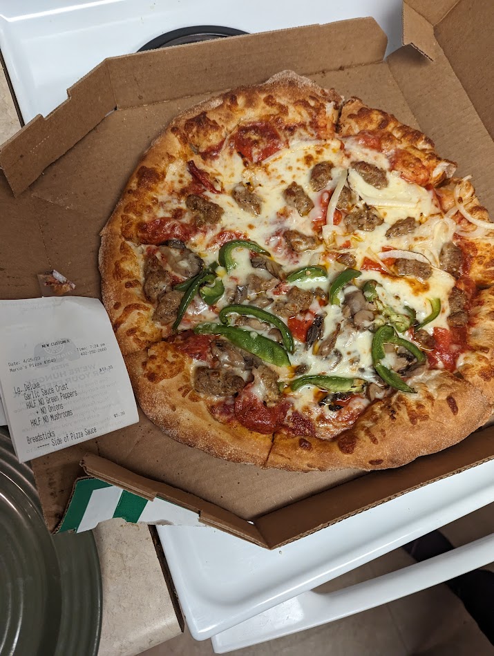 Read moreThe pizza is the best in town, the service was the absolute worse I've experienced. The delivery girl let some teenage girl walk up from out of nowhere, sign my credit card receipt, get in a car, and drive off with my food and receipt. We spent an hour and a half waiting, then called to see what was taking so long. The manager failed to identify herself properly, causing some confusion. We were told what happened and that a new pizza would be delivered. Instead, we had another hour and a half wait, with the explanation that other orders were ahead of us in our area. Our pizza tasted great, but it wasn't nearly as hot and fresh as we had hoped. We were barely offered an apology by the manager, and the delivery girl seemed more upset about the mix up than the manager. Great pizza, but if you dare to try their customer service, do pick up. It's the only way to make sure your pizza is given to you and that some random teenager isn't jetting around town with your full name, address, and phone number at her disposal. (Information printed on receipt.) **I do believe the delivery girl made an honest mistake, based on how earnest she was when she spoke to us. However, management completely dropped the ball. I think delivery drivers should be instructed to ask to see the card used to make the purchase when the situation is weird, or at least follow up immediately if they suspect a...