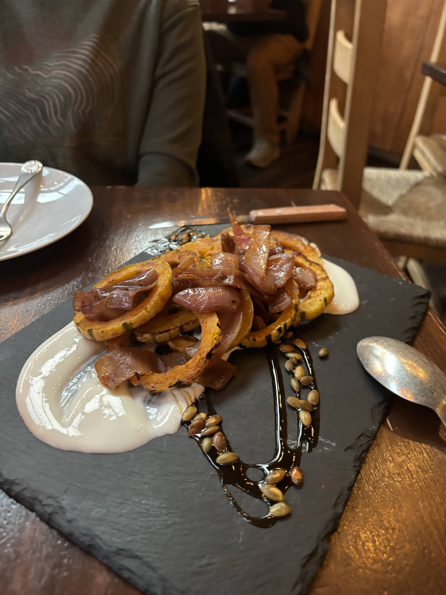 Outside of this absurd policy, the prices are just silly expensive. Tiny tables accommodate as many people as they can fit. The one star goes to the servers who were really nice and the superb bread salad that had a lovely and unexpected spiciness to it.