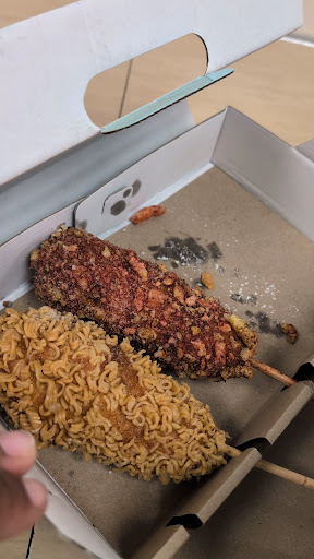 I got the corn dog with cheese and ramen coated. It was a sweet flavor yet salted just enough. I love the crunch of ramen so it was perfectly made.