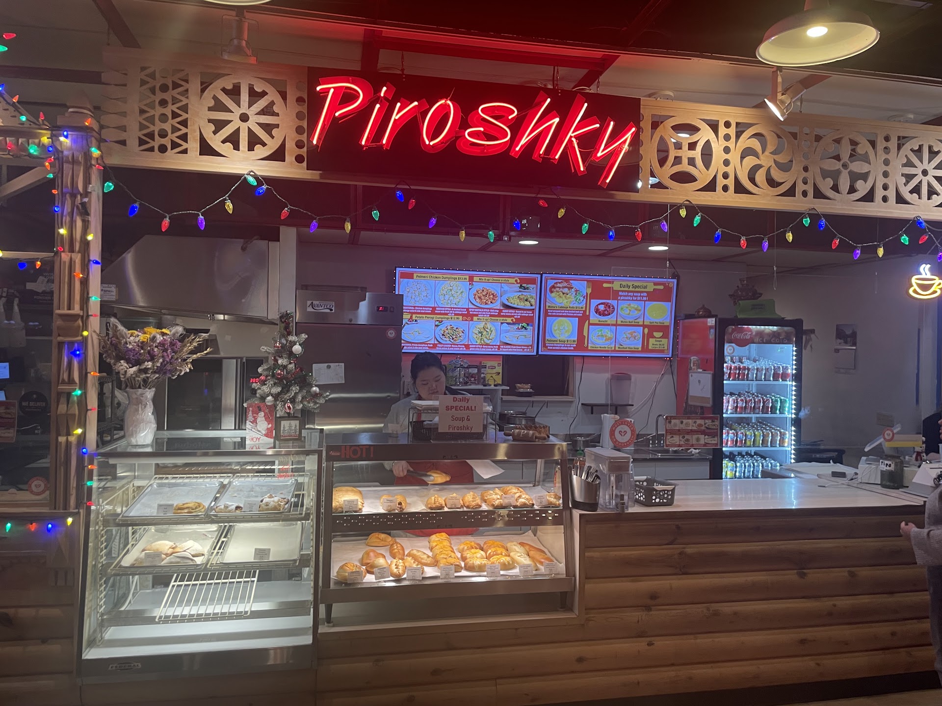 Read moreI used to get borscht here all the time (early2000’s) but it’s been a very long time. Happen to be at Crossroads and got some borscht and a potato onion piroshky. The piroshky was nice but I think just slightly underbaked. The borscht was terrible. It looked great. Lots of beets and a beautiful color but it tasted so bad I couldn’t eat it. It had no beet flavor at all, an awful aftertaste. I tried adding a bit of ketchup, vinegar and salt but it didn’t help. I’m not sure what it tasted like but even the bad borscht I’ve had was better than this. I dumped it after trying 2 more doctored up bites. I’m not sure if the same people are running this but they need to taste their...