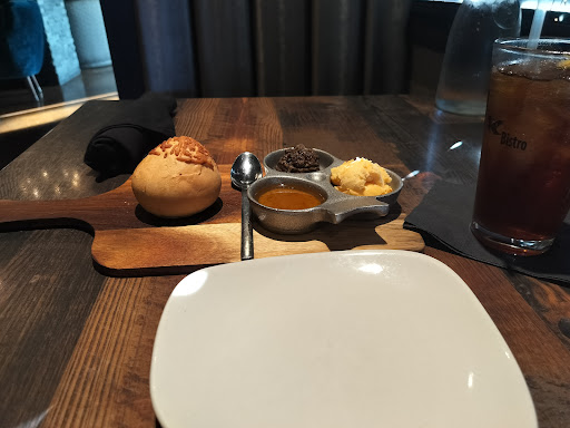 Read moreMy husband and I went to Plae Bistro last night to celebrate his birthday. We started with the brussels sprout bruschetta. It was decent, and we enjoyed it. The brussels sprouts were delightfully crispy and the balsamic glaze was flavorful. The bread of that evening was some sort of cheddar and herb roll. It was dry and bland, even after adding the siracha honey butter they provided. Next we had soup. I had the French onion, which was mediocre at best. The broth was too sweet and it had no umami. There was an appropriate amount of cheese on top. I honestly think the French onion soup from Panera is much better, though. But the golden standard will always be my own. My husband had the tomato bisque, which was also much too sweet. You could tell there was added sweetener. I make tomato soup often at home and it’s never sweet like what my husband had. For our entrees, I had the short rib with horseradish cheddar mashed potatoes and green beans. The short rib had excellent flavor, and the meat was tender, but somehow dry at the same time. The potatoes were good, but not special, and they were cold. The green beans were cooked excellently, but the stems were left on, so I had to remove them myself. They also had no flavor whatsoever. Not even salt. My husband had the Wagyu ribeye, along with risotto and green beans. The wagyu was not A5, but we were told that ahead of time and ordered it anyway. In my opinion, there’s no point in serving wagyu steak if you don’t have A5. You can get an equally high grade steak for a lot less money. You’re only paying for the name unless it’s real A5 Wagyu. My husband said it tasted like any other good ribeye he has had. It was cooked well, but it was nothing special. The risotto was soft and flavorful. Green beans were the same as mine. For dessert, we had the carrot cake and it was alright. The frosting to cake ratio was much too high. An exorbitant amount of frosting. The cake was moist and flavorful. It was enjoyable.
