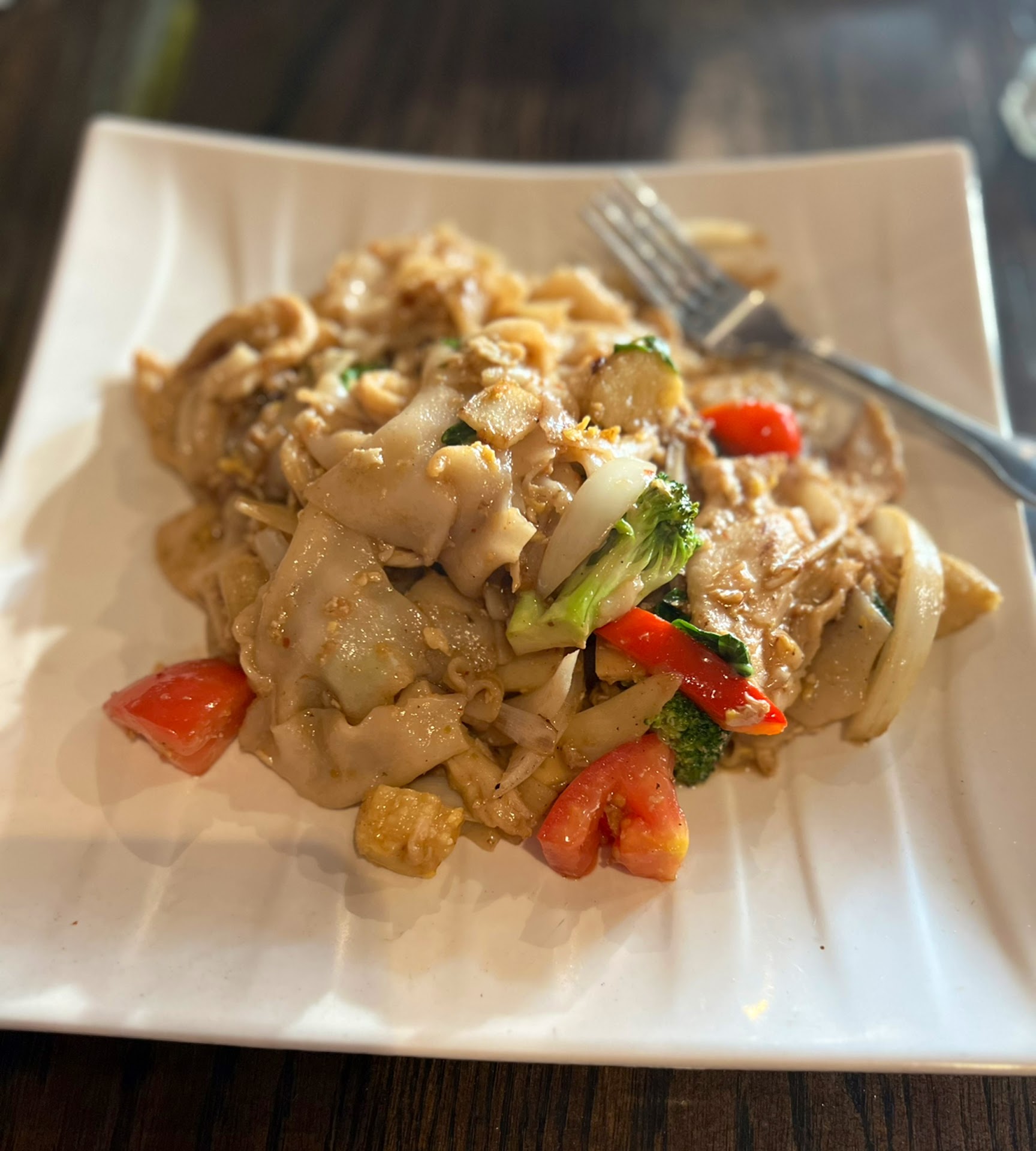 Pad thai and pad see-ew were standard, but I appreciate that they aren't drenched in sauce. No lime is provided though, so you can't squeeze to taste depending on your preferences and that was one con. The plates aren't the best for mixing your food (they're long and horizontal so food can fall on the short end). I'm more used to standard, circular plates which allow me to mix everything very well. This eater experience isn't the best but it's by no means terrible, you can still mix but you'll just require more effort if you want to avoid dropping food on the table.