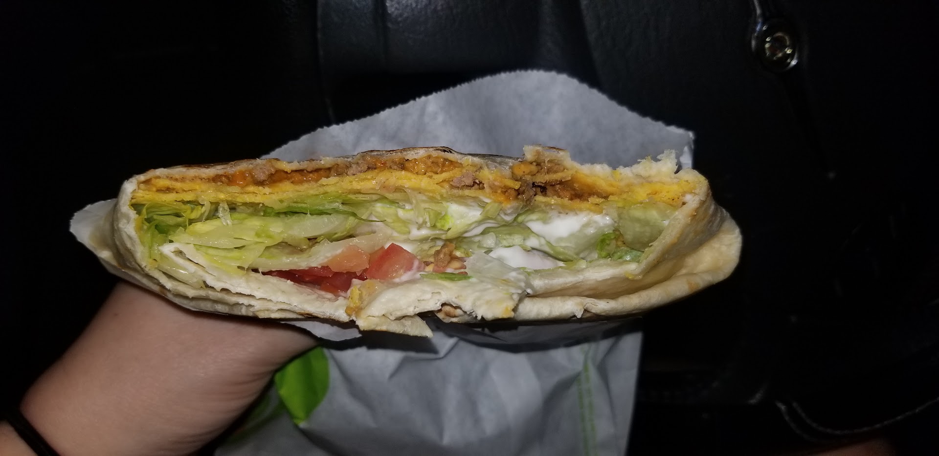 I ordered the Triple Double Crunchwrap. It was horrible. It was mostly lettuce, there was no flavor, and there was hardly any meat at all... which is probably why it was flavorless... According to the picture on the menu, there's supposed to be 2 layers of meat, but as you see in my picture, I can't even rightly say there was one layer of it. The mini beef quesadilla was good though. Probably because there was meat...