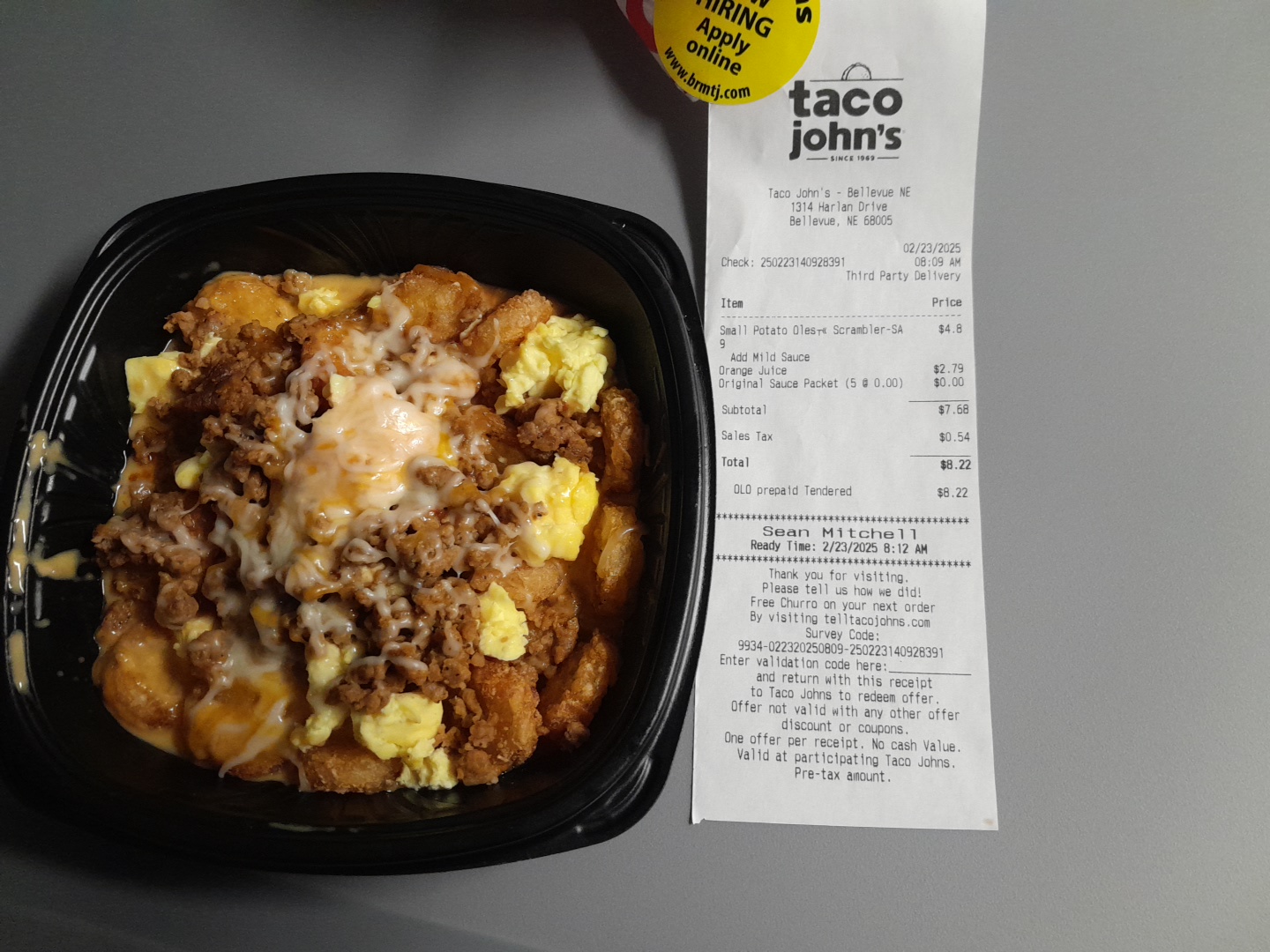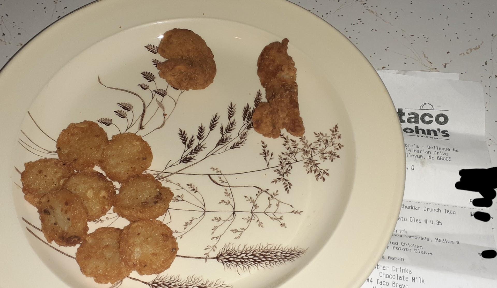 If you like tacos, for the price, this is a great fast food vegan option. Beans are high in fiber and protein and no cholesterol, so I am always happy when food on the road is this easy. The potatoes are really good, too, in fact for just .30 more I could have ordered a bean instead of beef taco and added the potato, I might do that next time!