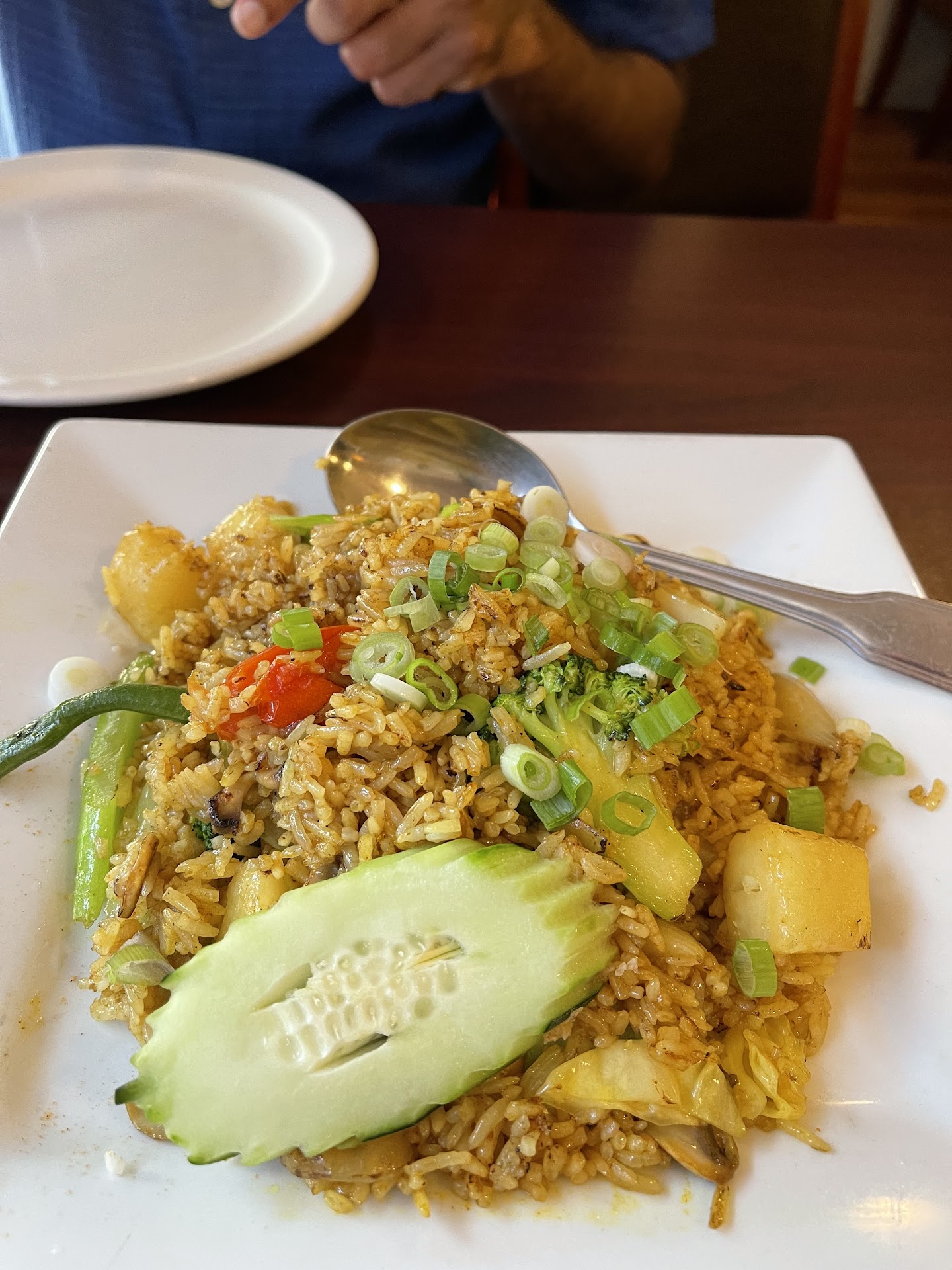 We opted for the Pineapple Curry Fried Rice, customized without egg or meat, and it was a taste sensation. The flavors were perfectly balanced, with the sweetness of the pineapple adding a delightful twist to the aromatic Thai spices.