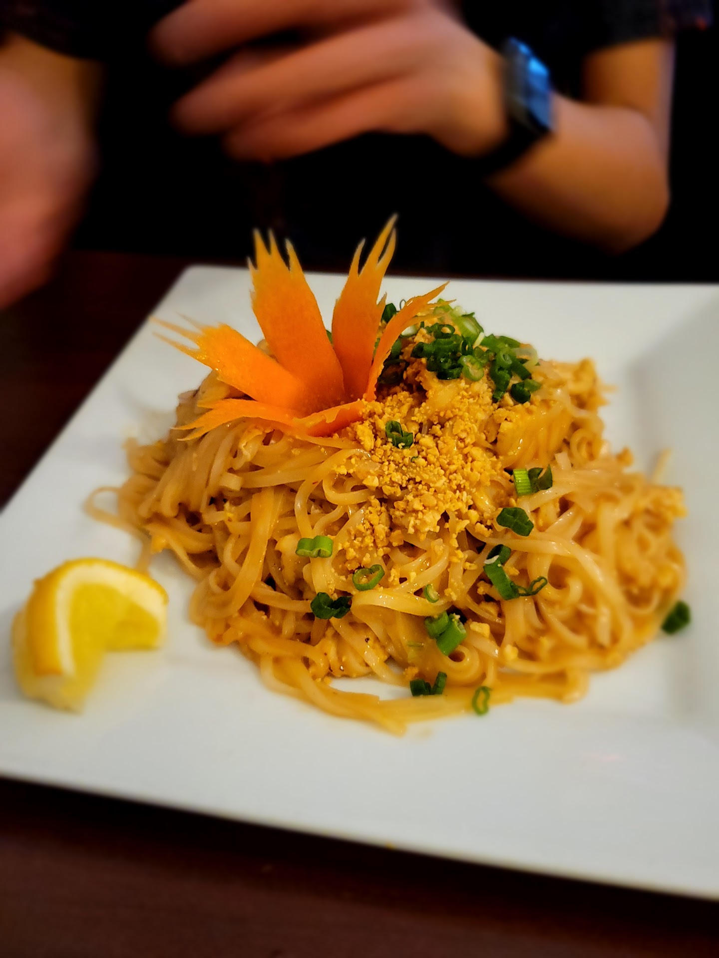 Chicken Phad Thai is beyond amazing!!! Picture perfect EVERY time! Sweetest service/staff! Also love their Chicken Thai Basil Fried Rice and holiday favorite (one of two best meals ever in my life!) Pumpkin Curry - thanks to these lovely ladies I tried Kabocha pumpkin (the dark green small pumpkins) for the first time in my life! It was again... beyond amazing! I am never a "regular" anywhere but have become one here... my system is very sensitive and upset from eating at other restaurants... this place always has the best ingredients, you can just tell the difference. Delicious Thai Iced Tea also! GR8 price/value... take very good care of these ladies, they take very good care of their customers :) Added bonus: a nice finish with a small dish of homemade coconut ice cream! Tip: Pumpkin Curry spend the extra for steamed rice and extra chicken you won't be disappointed!