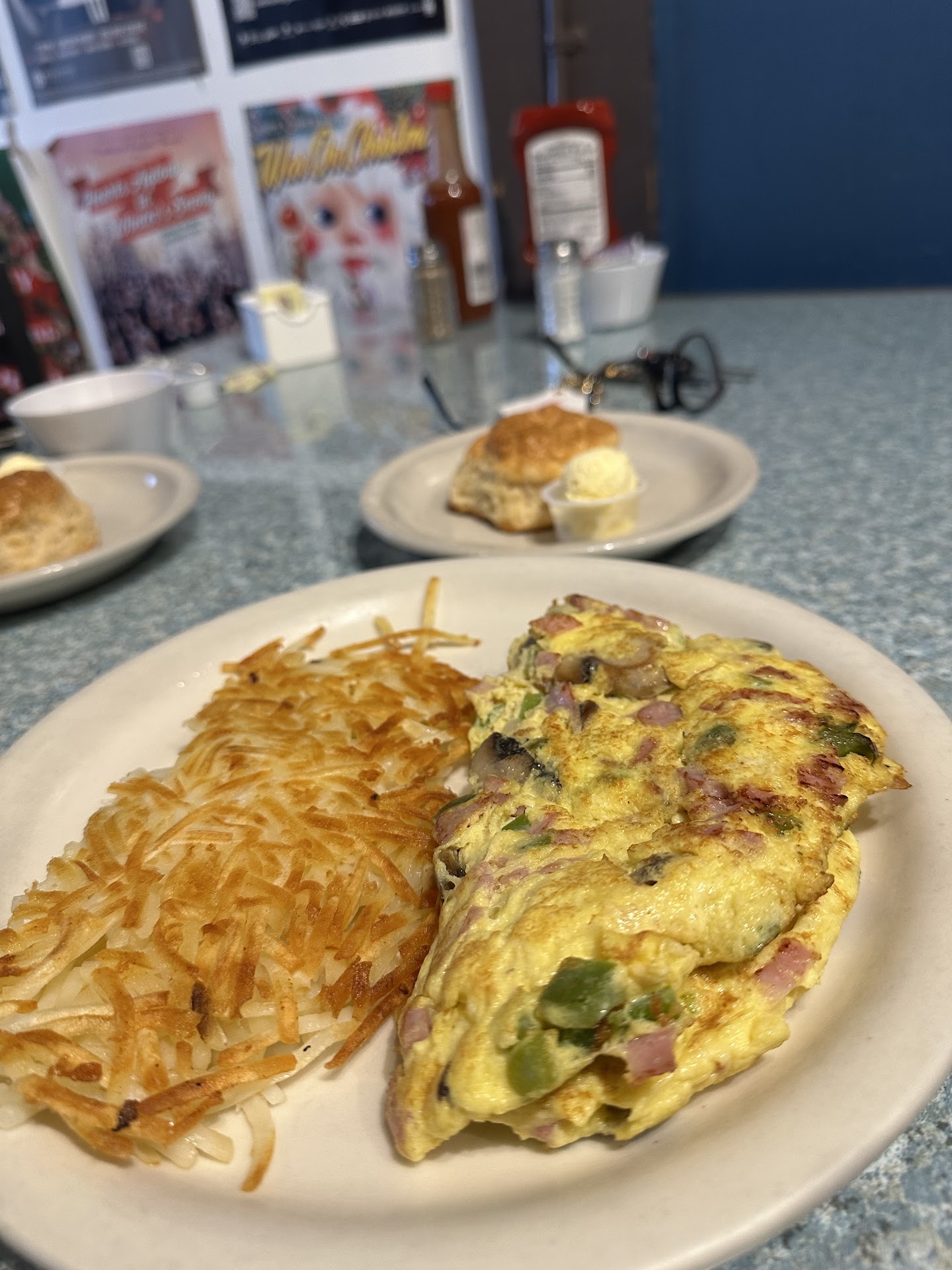 We had one Everything omelet, one order of biscuits and gravy, stack of pancakes, and one cup of coffee. Nothing was terrible but bill was over 50 bucks before tip.