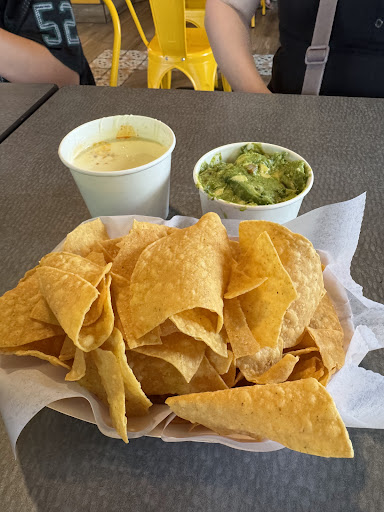 The chips were a good thickness but didnât have any salt on them. The guacamole was definitely homemade because it was basically whole halves of an avocado that we had to cut/mash ourselves in order to eat it with the chips. The choriqueso was white queso and chorizo. It was good but itâs pretty hard to mess that up.