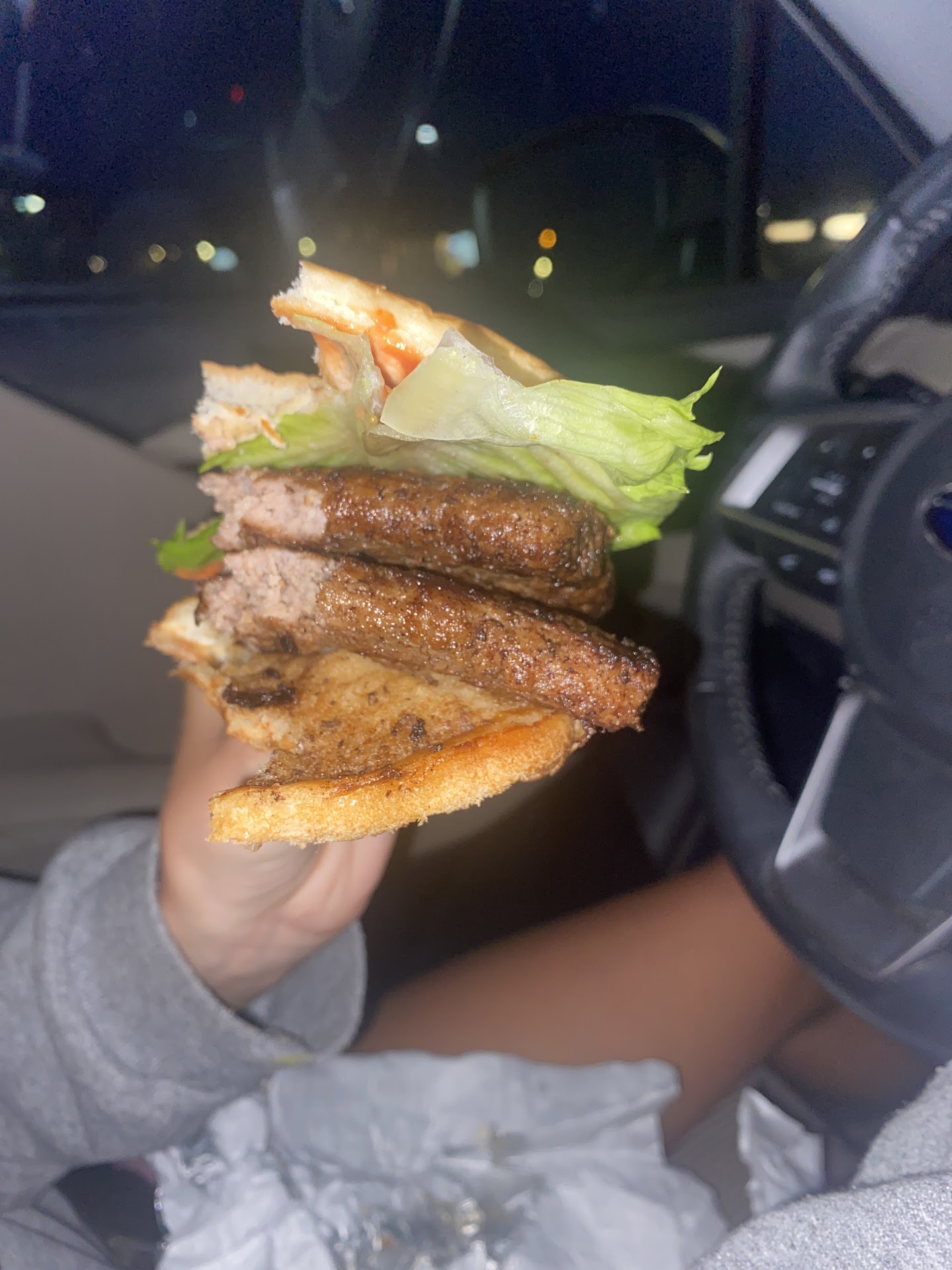 I ordered a meal through the drive through at 5pm. I had a few minutes to spare so I pulled into a parking spot, began to eat my cold chewy fries and then opened my burger. A long blonde hair was intertwined in the sandwich. Wrapped all up in the tomato.