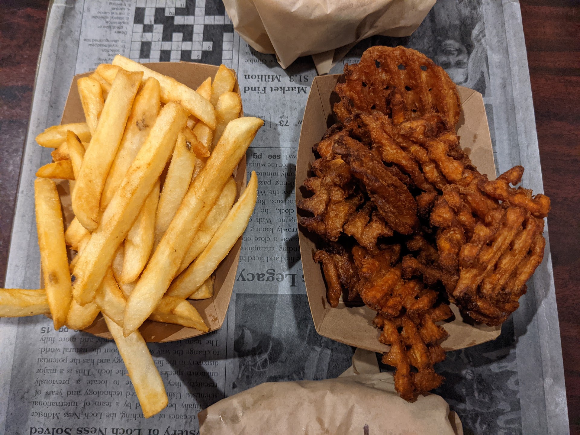The fries were better than most; in fact they tasted just like traditional English chips in the most ideal sense. They could have benefitted from a little more crunch or crisp on the edges but they weren't wet or sloppy from oil so there's no wrong done here.