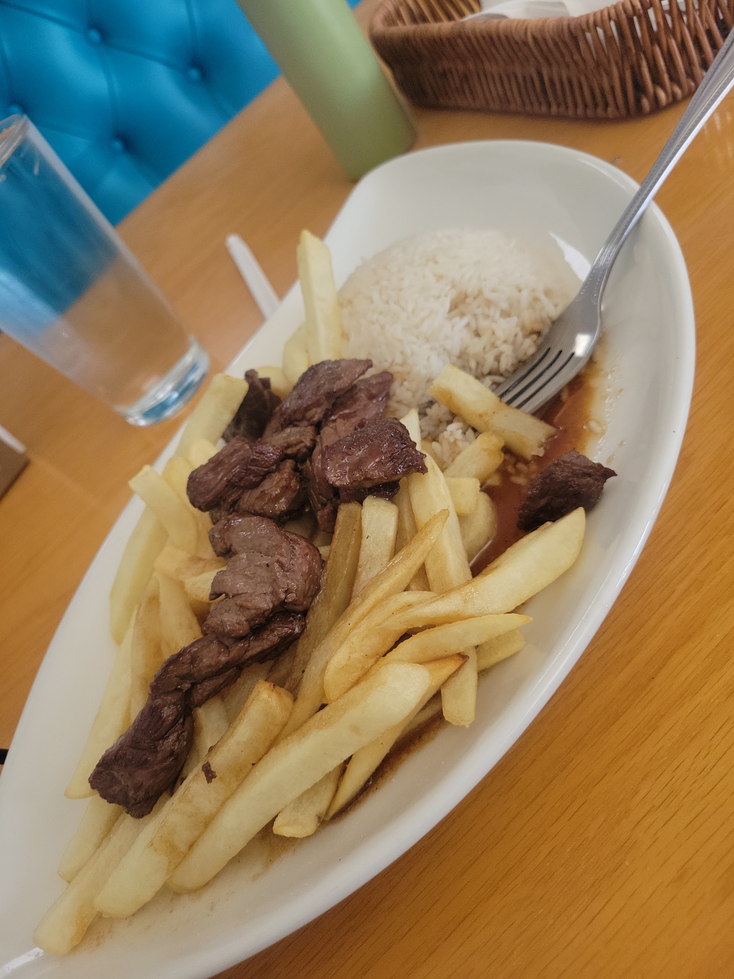 Im very picky i only eat lomo saltado without tomato and onions but that dosent mean i want a steak with fries ... If so ill prep myself at my home .. i want all the sazon of lomo saltado (ajinomoto) prep into the beef and fires not just fries from the normal...