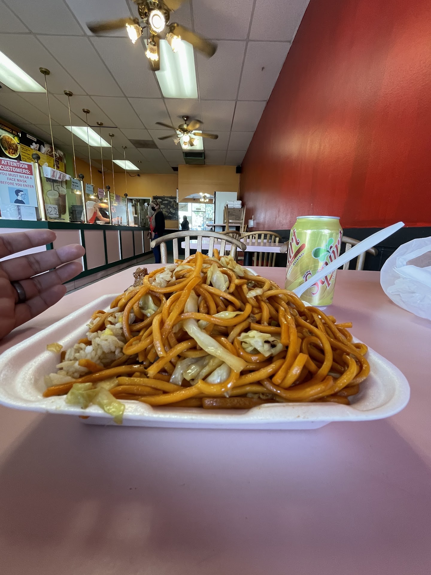 Read moreIm always on the road so i like trying diffrent chinese fast food places depending on where im at, yelp this place, people gave it 5 stars, only one guy working, he was the cashier, cook and server, got teriyaki chicken and spicy honey chicken with steamed rice and chow mein and two egg rolls, before i start to eat i wash my hands no bathroom inside, egg rolls and steamed rice had a bad taste kind of tasted like sink water... long story short teriyaki was alright...
