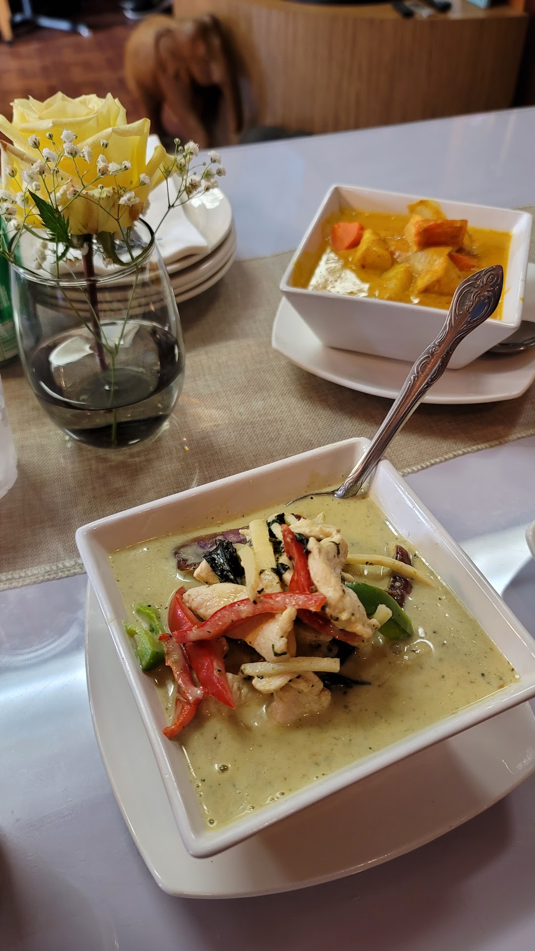 2ND REVIEW I recently visited Jazz Melody Thai restaurant for the second time and once again, I was blown away by the delicious food and cozy atmosphere. This time, my dining companion and I decided to try the red curry and pineapple curry, along with a green papaya salad to start.