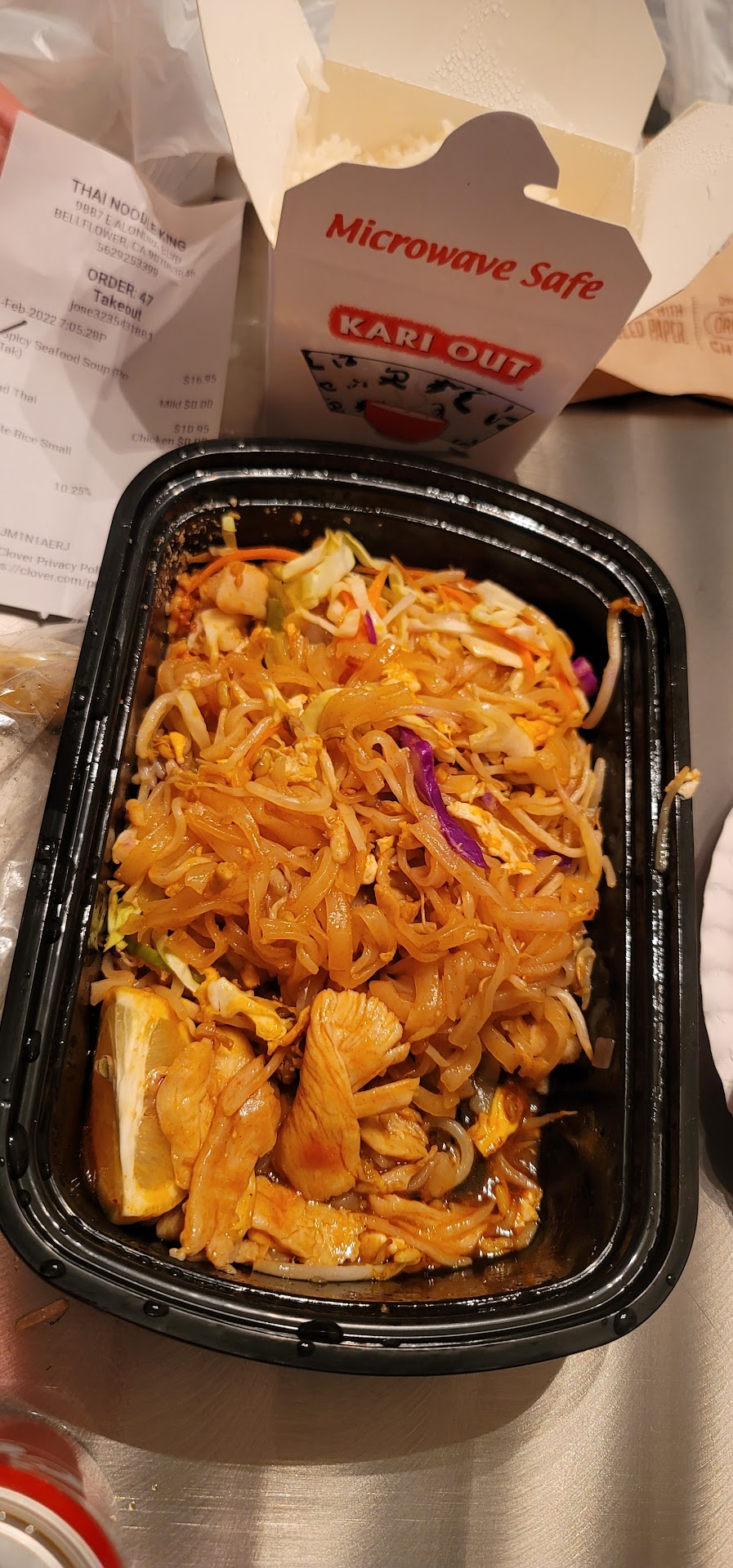 Read moreLet me preface this by saying I’ve ordered from Thai Noodle King over two dozen times. Lately, the food has been disappointing. First time I bit my tongue. Today, I ordered chicken Pad See Ew and two other entrees. I order Pad See Ew as traditionally, a Thailand specialty, as most people expect to eat noodles. To my very unfortunate dismay, it arrived (I ordered from an online food delivery service. I applied all rationale and even wanted to blame the delivery driver but by the placement of the vegetables, the blame is strictly on the restaurant). It straight looked like porridge that were scraps from the sides of the pot so they can make a few bucks instead of serving quality food to their customers. If you were a stray dog roaming through the alleys hungry for food, I’m sure it’ll be edible. I called to address the issue and the lady on the phone attempted to patch things up by making another order so I can pick it up. Hmm. Let’s think about this. I ordered through an online food delivery service to make it a one way trip. Besides, we were all ready for dinner with the table set. No offer for compensation until I asked if she could refund me the money for just portion of the order. She stated she could not and for me to try the delivery service to refund a portion of the order. Needless to say, this will be my last order from this place. Make your own decisions but this is...