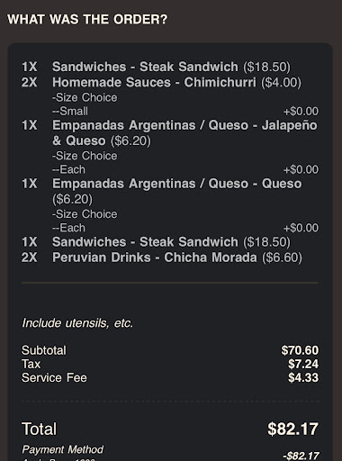 Read moreOrdered on their website for pick up. When I go to pick up, they had everything except my chicha morada drinks. No big deal so I just accept the food but ask for a refund on the drinks since the website charged me for the pick up order. The cashier didn’t know how to do a refund and left my name/number on a sticky note and said someone would call me next day for a refund. I never get a call so I decide to call owner or manager, Santiago, who said he wasn’t sure he’d be able to give me a refund. I feel that I shouldn’t pay for something I didn’t receive. Honestly really disappointed. Santiago also said he would call me back next day again to see about a refund and never did. I decided that since I already called to request a refund and never got a clear answer, I filed a report with my credit card. I didn’t even ask for a full refund, I only asked for refund on the food I did not receive and that they did not have available. Thankfully my credit card gave me the refund. So be careful when buying on their website, it won’t tell you if something is out of stock but will still charge you. And if you pay for something and don’t receive it, just be careful because they won’t do a...