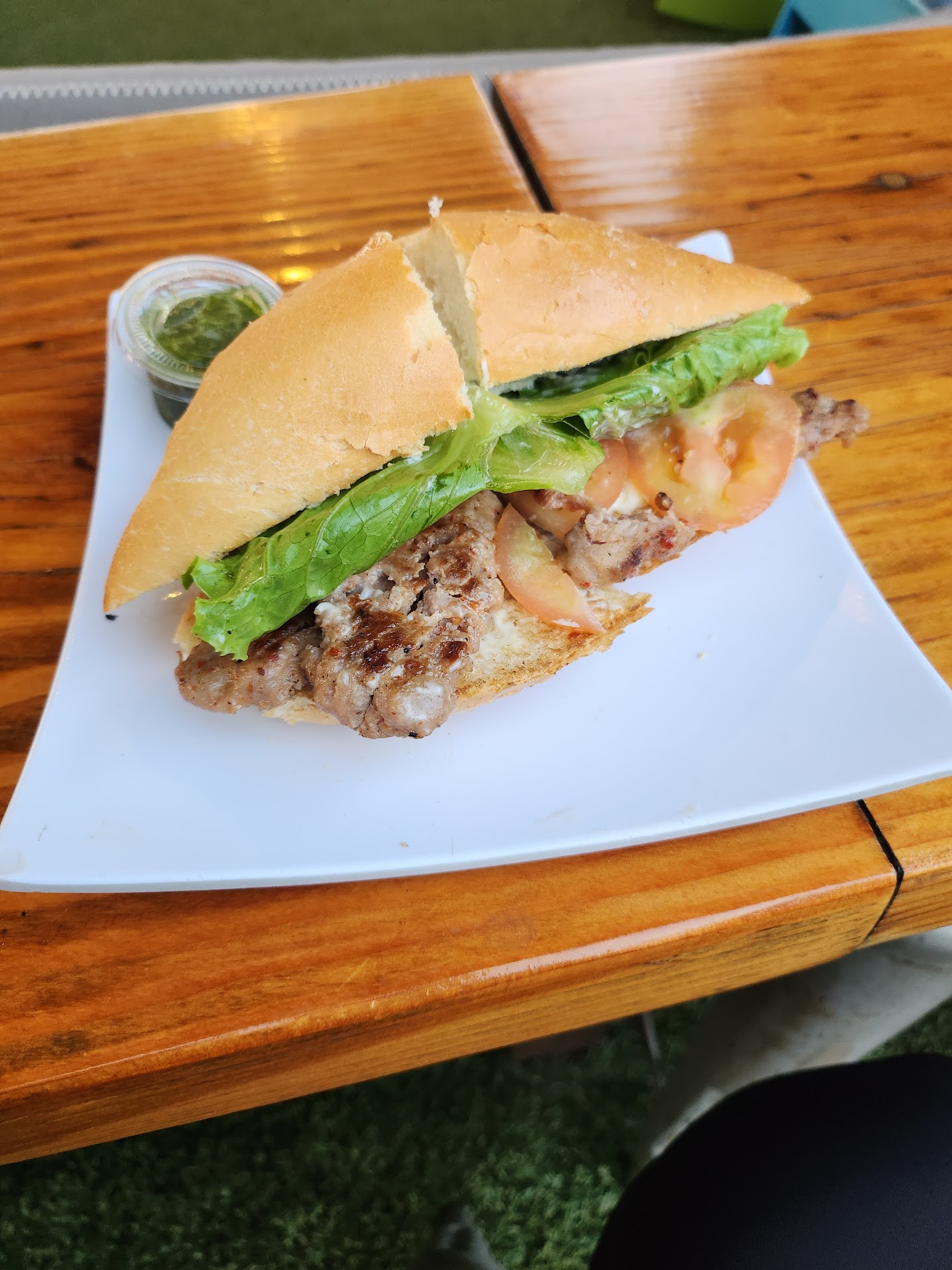 Now that's out of the way, let's get to ALL the pros: -Ambiance. Only once prior have I ever been to a similar sort of place. The layout has several eateries surrounding long benches and a small astroturf area, much like a really cool backyard. I went mid-afternoon and it wasn't too busy. There was a painting class going on, taking up some of the benches.