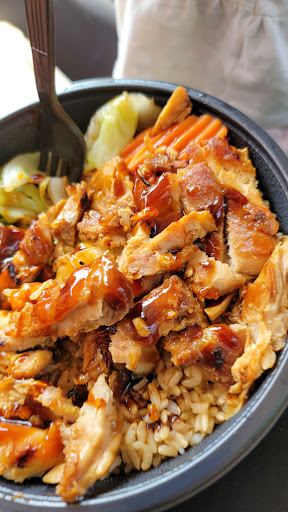 Went in for a quick lunch and was mildly disappointed to have waited 15-20min for dry overyly cooked chicken that tasted as if had been previously cooked, set aside and re-heated. I would not purchase again from this particular establishment for this is the 3rd time this has happend. Perhaps that is their method of service, but I find it unreasonable. Other establishments serve freshly grilled chicken and freshly cooked sides and so can they. I will say that the dumplings & tofu were by far my favorite and would actually recommend because they tasted as if they were cooked to order, not sitting around. Of course their not handmade but still better than dried out burnt grilled chicken. Please work on a better quality brown rice, it too could use some work. It was also quite...