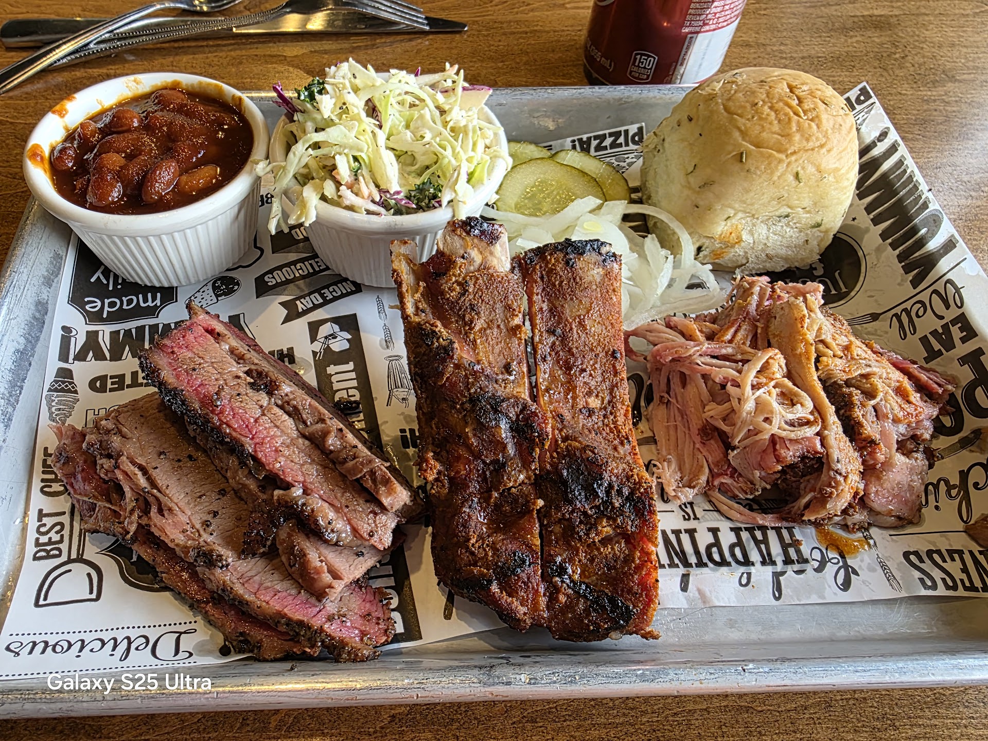 Read moreBrisket was the star, but the rest kinda fell flat for me. Got the combo for one and was excited. Two bone ribs just did not have that Texas BBQ taste I was expecting based on all the hype. Pulled pork was not as flavorful as I expected either. It just seemed to be lacking that real smoke flavor and mouth tingle I have come to expect back home. Mac and cheese was piping hot and good. And the cole slaw was good when a good amount of pepper was added. I know some people like just the mayo dressing with it, and the texture was really good. I like that it was not just a bunch of random, same size pieces. If I had to do it again, I would request a lean brisket platter, and skip the ribs and pulled pork
