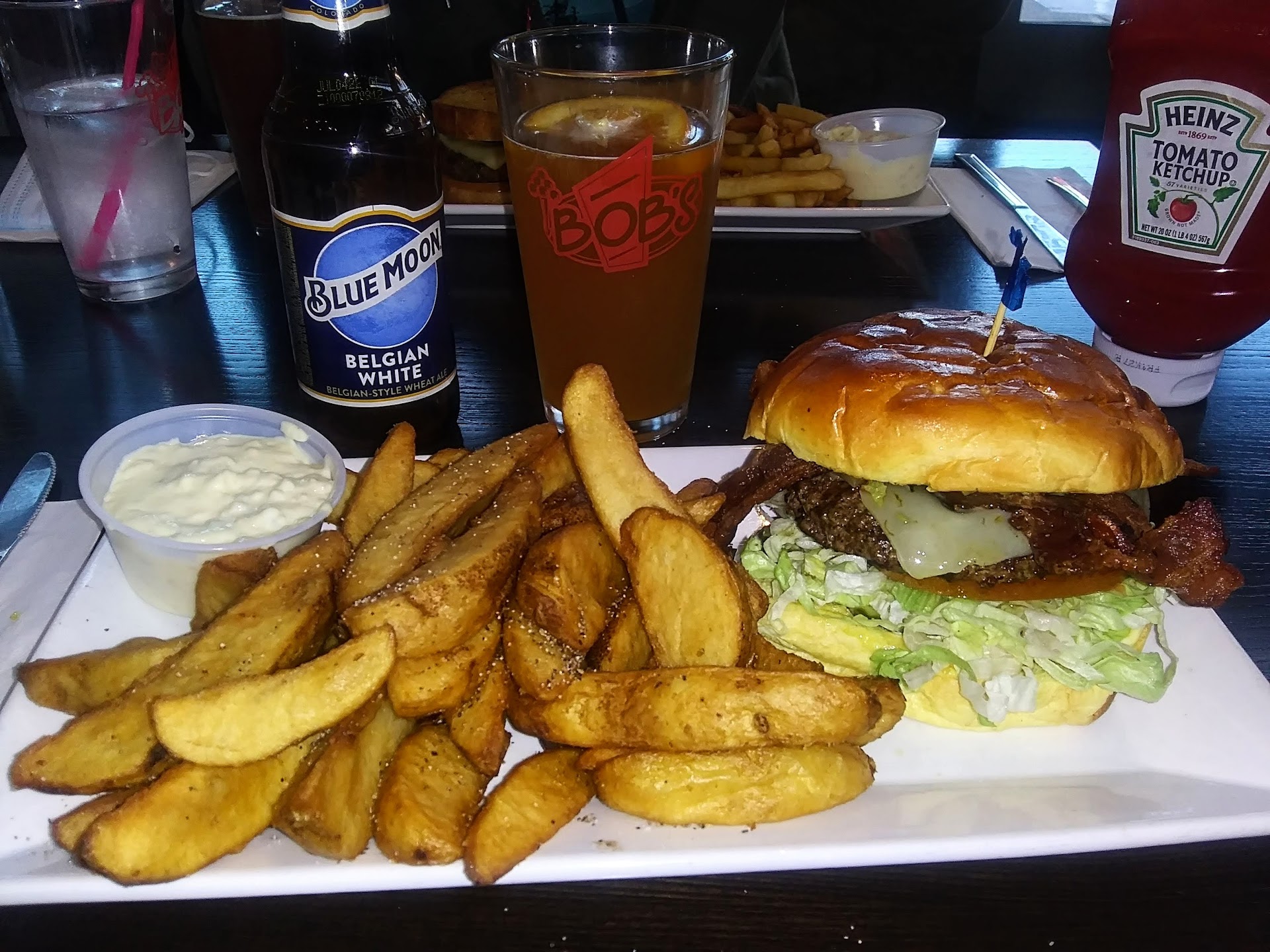 Read moreBob's Burgers and Brew always delivers on delectably delicious, melt in your mouth, firing on all cylinders flavor! Along with exceptionally filling portions, you won't break your wallet and always well worth what you pay for. Perfection on a plate no matter what you order! My personal favorite burgers are the sweet and savory Hawaiian Burger and the rich and smokey Guacamole Bacon Burger. Jam packed full of juicy goodness, paired with a side of hot and delicious fries, wash it down with a cold and refreshing beer; I went with Blue Moon, your taste buds will thank you! 😋 I recently had the Steak Salad that was just to die for! Dangerously delicious with a generously portioned steak, cooked rare to melt in your mouth perfection! Paired with a tasteworthy raspberry vinaigrette and texas toast to soak up that sweet dressing. Definitely worth getting again! Almost everything on the menu is worth getting again and again! Home run every time! Bob's hits it out of the park with flavor! Everything on the menu is a Ball park win for the record books! 😁👏 Friendly and welcoming staff will make you feel right at home right as you walk in. Optional outdoor seating as well, for those sunny day Sunday brunches, or dinners, or just a drink with a friend... whatever the occasion, be sure to make it happen at Bob's Burgers and Brew! 5 stars hands down, two thumbs way...