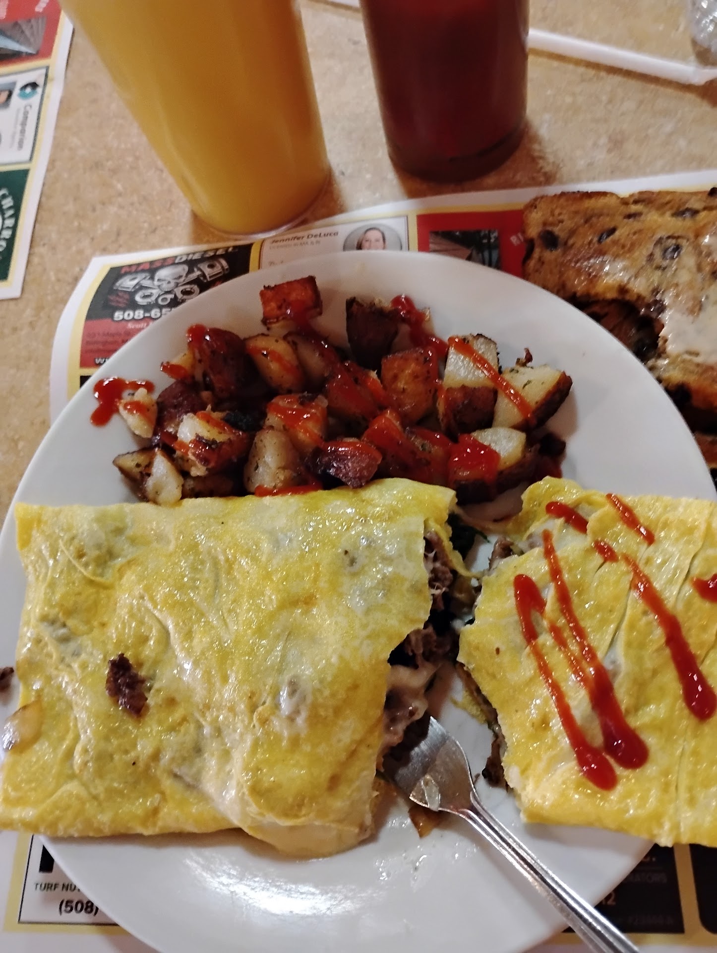 I feel like I need to start this review by explaining that my Girlfriend Woke up this morning, after only ever having been here 1 time saying "I want to Go to the breakfast nook!" Our First experience here we got here roughly 10 minutes from their closing time. Having been in the Restaurant business for 15 years I recognized that this was a party foul and told them I would take a menu and Come back another time. The waitress on was an older woman, she insisted we stay and treated us like royalty. We asked if they had Iced Coffee and they did not.(Thinking back on it now I would assume they were out of Iced Coffee being that close to closing) I asked if I could grab my girlfriends Iced Coffee and they were completely fine with it. I am mentioning this because of Our experience today. I called to make sure they were open, I was told "YUP!" then hung up on. I didn't think too much of this because I assumed they were busy. Upon Arriving a sweet little blonde girl sat us and got our drinks. My girlfriend Requested a water being that she had her iced coffee with her. When the waitress walked up she immediately before even saying hello said "Its our policy not to allow outside Beverages into the restaurant. You will have to put that in your car." When I tried to respond and explain the last time we were here they allowed she interrupted me, (Before I could Apologize mind you) And Made us aware of the sign on the Door that said No outside food or beverage. I'm aware I am a hot head. Most of the time Poor Customer service is something that sets me off. So I am aware that at this point after being interrupted I would not have been the most pleasant person. I explained to her that we had dogs in the car, and we weren't putting the coffee in the car, so we could either leave or we could forget about the coffee. She then Stormed off like a 4 year old who didn't get her way and spoke to the manager. The manager(Who never even addressed that there was a problem mind you,) Clearly explained to her that it was not a big deal and asked her to drop it because she came over... Reminded us of the policy then asked us for our order. My girlfriend asked how the Cornbeef Hash came... Her Response? "ON A PLATE" I'm not going to even bother going into the rest of her Failures as an agent of customer service, I feel this CLEARLY represents what I'm trying to get across. The point of my review is simple. This Restaurant is fine, this specific Server is the issue. If you decide to go here ask not to be served by the tall bulimic looking brunette with the bad attitude. And if the breakfast nook reads this? Please explain that "Your Policies" are not ever important enough to argue with a customer. Your pride doesn't earn you tips........ which is the ENTIRE reason you are...