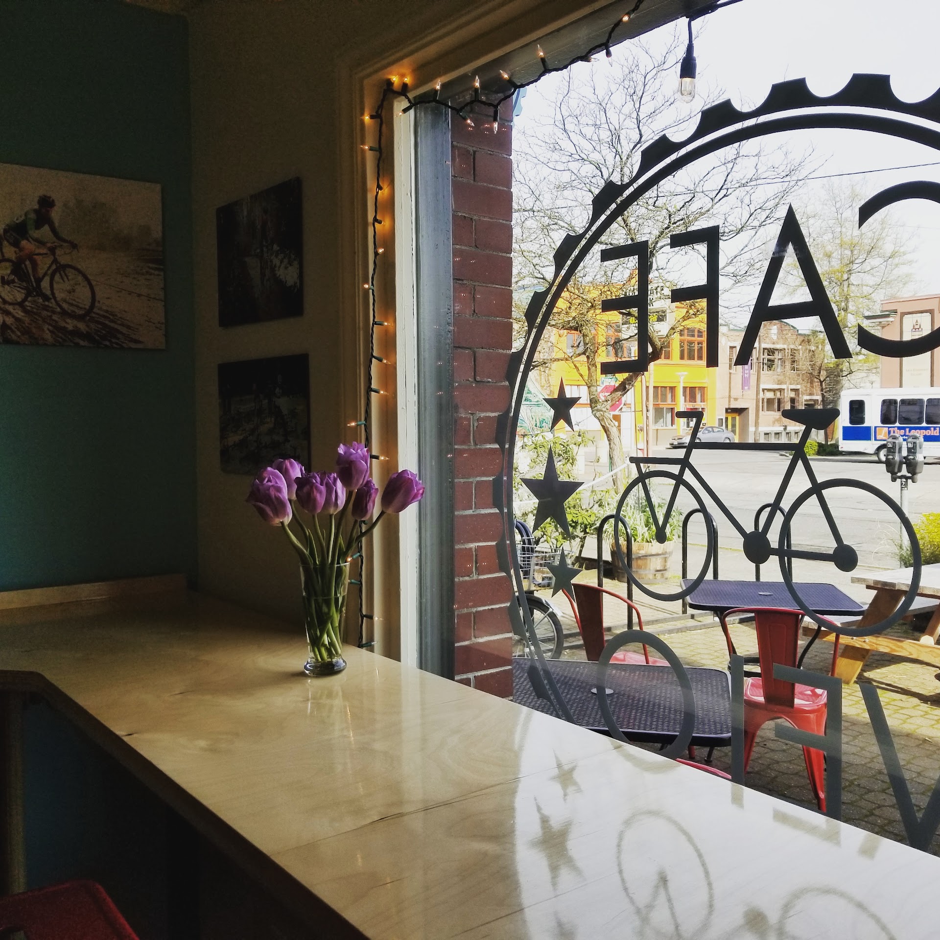 Read moreMellow atmosphere. Good coffee with some tasty, unusual alternatives such as tumeric lattes. Large, fresh, flavorful salads. Sandwiches are fresh and tasty with one plant-based option. Unfortunately, no vegan cookies or treats and no plans to add any. The owners are just lovely people and friendly as well as interesting and fun to chat with. The courtyard is a lovely area to have lunch or espresso and a great place to meet people when it's not raining. Velo is part bike shop, so the larger room is shared with bikes in the process of being repaired. There's a TV in the bike repair room that often has sports on, but...
