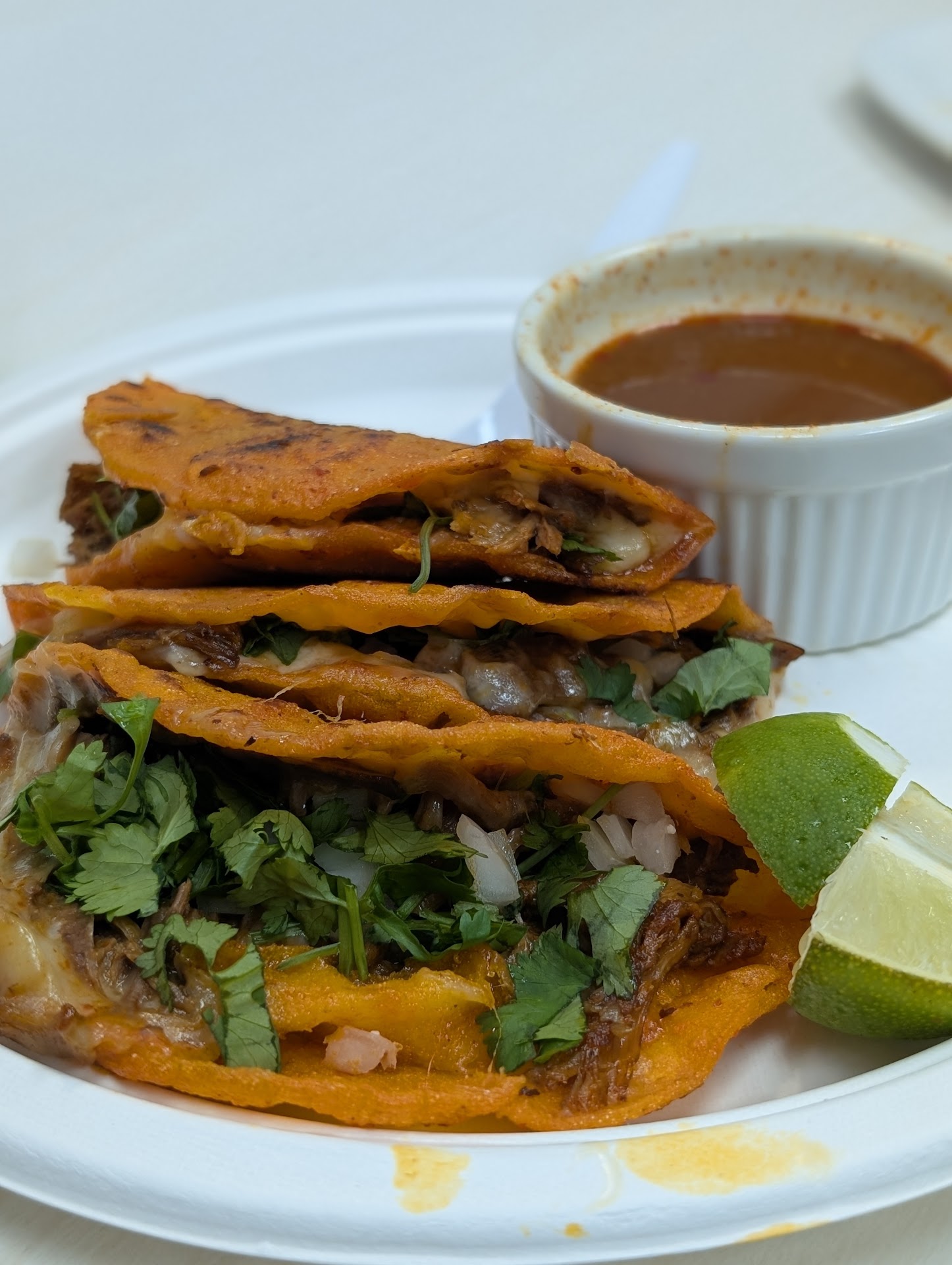 Read moreI have been wanting to try this place since I found out they had quesabirria!! Now I am kicking myself for not going sooner!! I live right down the road so I will definitely be making regular stops!! I added rice and beans to my plate and didn’t even need to the quesabirria was more than enough! I saw a comment say that they were a bit expensive but with the cost of everything going up I don’t think the price is bad at all! I will definitely be back! Oh and the ladies behind the counter were so sweet! A+++ the only thing I would say is I like limes with my birria but next time I just...