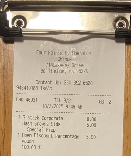 I had a really positive breakfast experience at Chinuk, located inside the Four Points Sheraton in Bellevue, Washington. The quality and variety of offerings truly impressed me. I also their veggie omelet and found the flavors balanced and the portion generous.